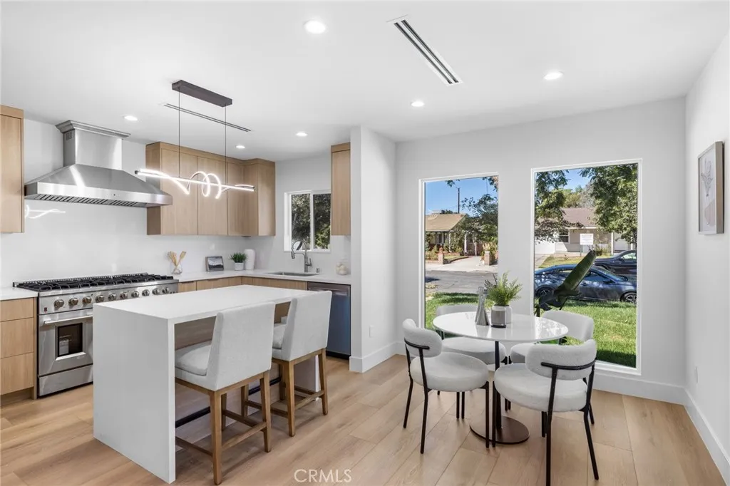 Price Improvement!! On a quiet street in Burbank, we are unveiling this brand new SB9 construction project, which makes a monumental leap forward in urban development. Designed with a blend of innovative architecture, sustainability and efficient use of space, this structure exemplifies the evolving needs of the community. Where traditional homes meets contemporary style, a once dated front house has been redesigned and paired with three newly constructed units. The redesigned front house with its charming front porch, features 3 bedrooms and 1 3/4 baths, an open living space with high ceilings and a custom kitchen with stainless steel appliances and an eating area on the quartz topped island. There is also a laundry closet with a stackable washer and dryer. The one bedroom unit features 10 ft ceilings and is attached to the back of the front house but has separate entrance. It features a full bath, a laundry closet, and custom kitchen cabinetry with quartz stone counters. The back two story structure consists of two new identical 2 bedroom, 1 bath units The ten foot ceilings are featured throughout with an abundance of kitchen cabinetry and quartz counters. The upstairs unit offers lots of natural light and some views as well as outdoor living with a generous sized balcony. The downstairs unit has a private patio which would be ideal for entertaining. These two units are newly built and therefore have completely paid for solar panels. All units feature tankless water heaters and there is a long driveway for cars. There is also an attached single car garage. This new develo