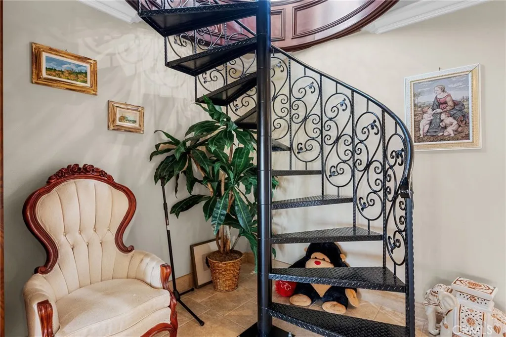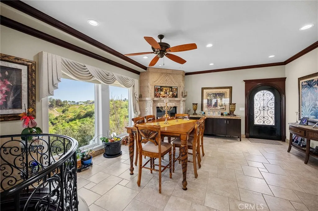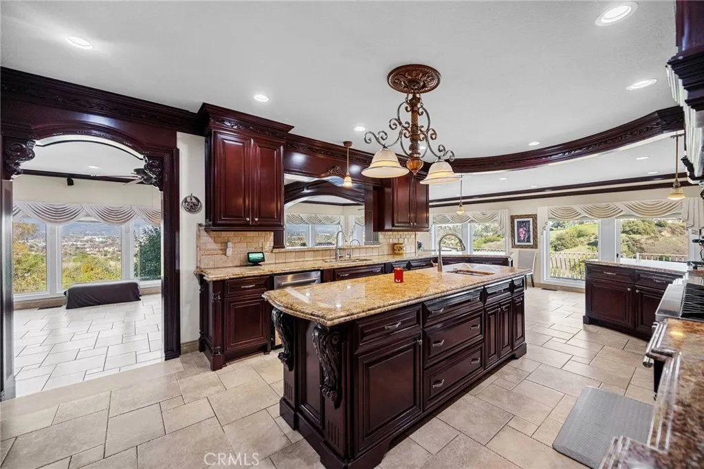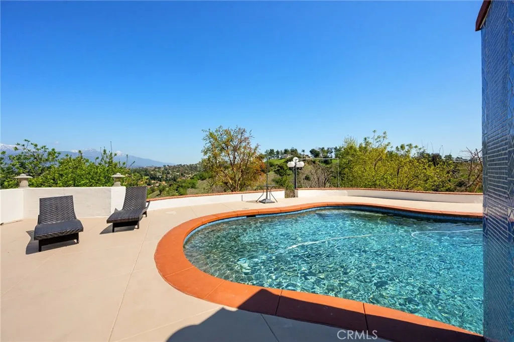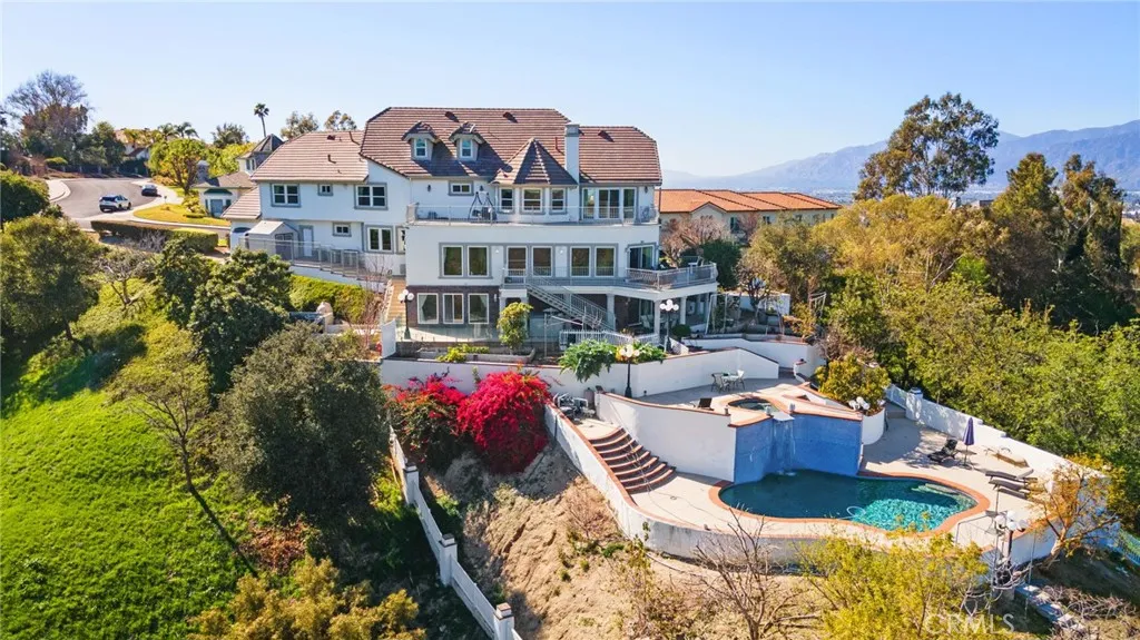 Exquisite Mediterranean Estate with Breathtaking Views in Via Verde, San Dimas Nestled on 2.91 acres in the prestigious Via Verde community, this custom estate is a masterpiece of timeless elegance and modern luxury. Designed with meticulous attention to detail, the home features imported travertine flooring, rich cherry wood finishes, and handcrafted Italian wrought iron railings, creating an ambiance of unparalleled sophistication. At the heart of the home, the family room showcases a striking Italian granite fireplace, while the formal dining room offers breathtaking panoramic views of the valley and mountains, framed by soaring ceilings and exquisite cherry wood arches. The chefs kitchen is a culinary dream, boasting an 8-burner FORNO stove, three ovens, a chefs Decor refrigerator, and a 10-foot one piece granite island. Enhancing its charm, a Cantera stone fireplace imported from the Mayan region and a combination of Roma-pattern travertine and Italian porcelain flooring add warmth and character. A fully equipped custom bar, complete with a built-in blender, sink, and fridge, makes entertaining effortless. The luxurious primary suite is a private retreat, featuring a gas fireplace crafted from imported Italian marble, a wrap-around balcony with breathtaking views, and his-and-hers walk-in closets and vanities. The spa-inspired primary bath offers a Jacuzzi for two, Italian porcelain flooring, and resort-like tranquility. With four additional spacious bedrooms and a finished attic bonus roomperfect for a loft or an extra-large bedroomthis estate provides ample space for