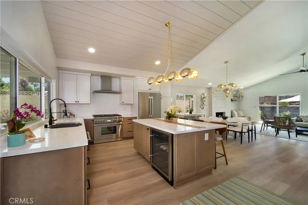 REDUCED OVER 100K!! DO NOT MISS THIS OPPORTUNITY. A MUST SEE HOME AT THIS PRICE. Fully remodeled & permitted home, embracing the mid-century character of its builder. A licensed contractor performed all work. New electric panel, updated plumbing in kitchen and baths. Three fully rebuilt bathrooms with Restoration Hardware cabinetry, lit vanity mirrors and new hardware and fans. Beautifully expanded chefs kitchen with "Kemper" hardwood cabinets, top of the line Thermador s/s appliances, 6 burner gas range, beverage center and microwave oven in a double sided storage island. Additional storage with built in buffet including pull out drawers and Quartz counter tops throughout. All new flooring throughout the home. The primary bedroom was also reconfigured to create an enviable walk-in closet while also having a second closet for dresses or shoes. The primary bedroom's new built in dresser and sitting alcove create a mid-century retreat feel while still having room for seating or additional bedroom furniture. The staircase was rebuilt and shifted to allow for a grander entrance and ease of flow to the family room. The two restyled fireplaces have become feature walls to both main living spaces. Two hall closets were created further amplifying the robust storage in this large home. New lighting throughout the home provides both style and ambiance. Furniture is available for purchase. Reimagined exterior living brings additional seating in both the front and back yards. A spacious front courtyard was created with new slider access, privacy fencing and creative hardscape. The livi