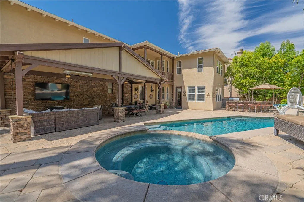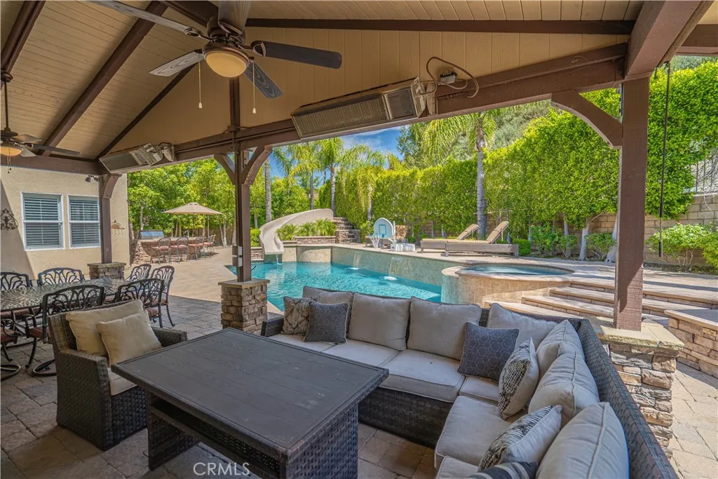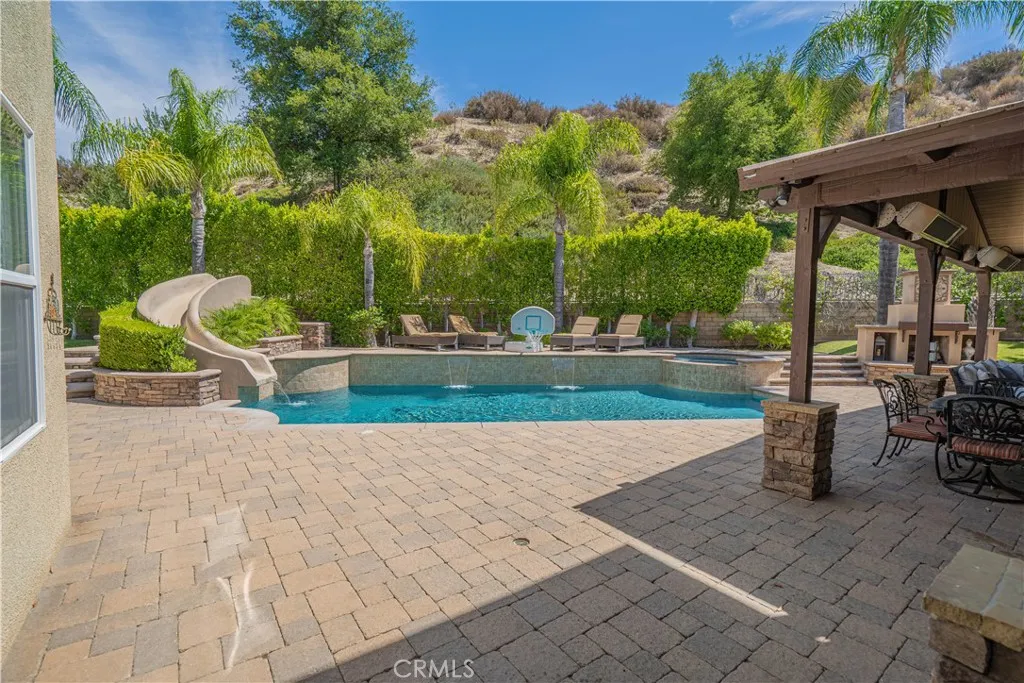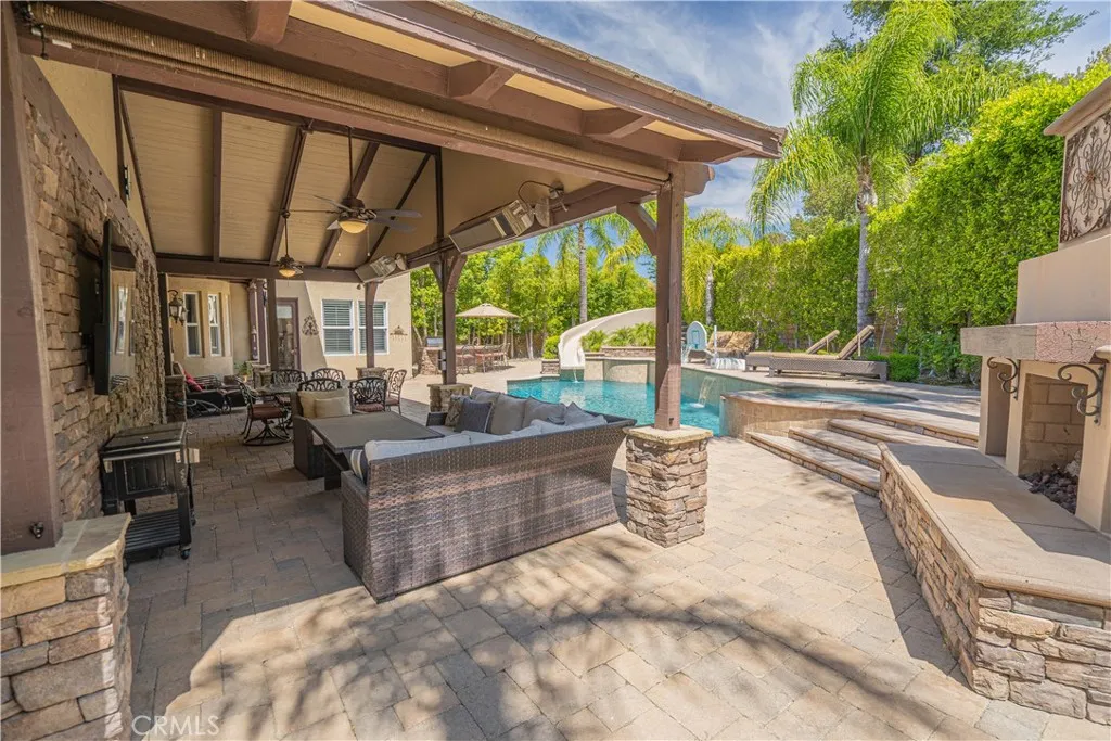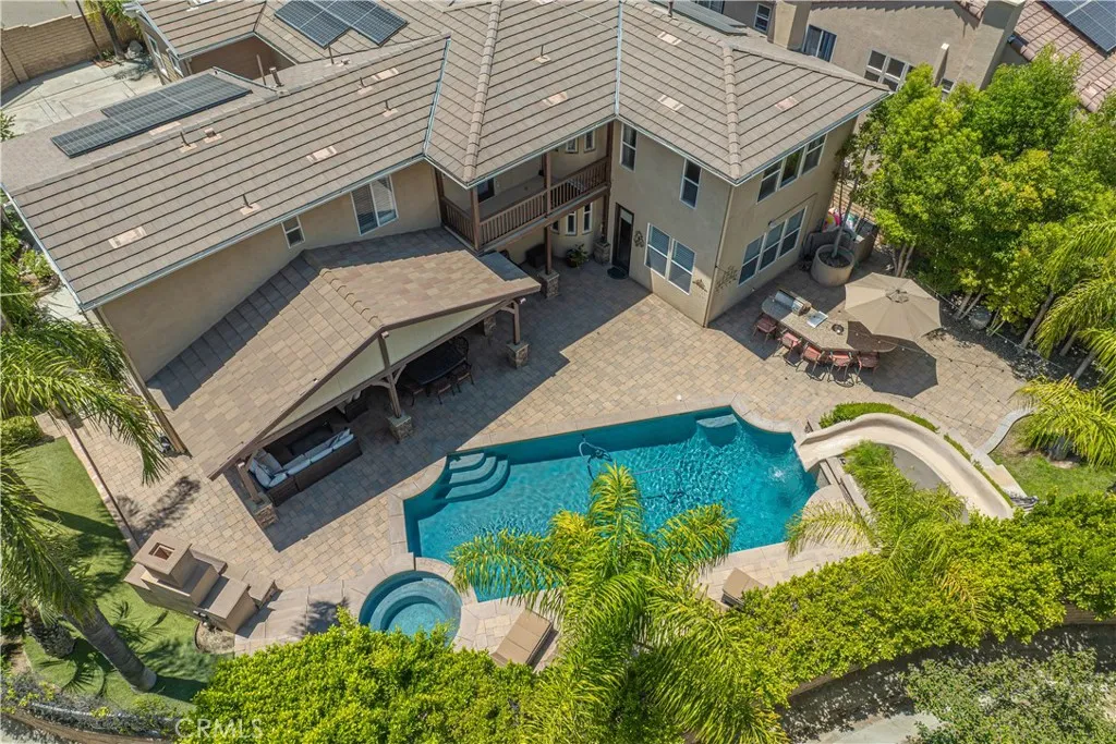 Tucked at the end of a quiet cul-de-sac in the coveted Southern Oaks community, this private gated estate offers exceptional privacy and resort-style living on over half an acre. With 6 bedrooms and 5 bathrooms, the home includes two second-level en-suite bedrooms and a sixth bedroom with a private entranceperfect for guests, a home office, or potential ADU use. This is a true smart home, allowing you to control door locks, the garage door, entry gate, thermostat, and pool equipment right from your phone. Inside, enjoy a dedicated home theater, while the expansive backyard is an entertainers dream featuring a pool and spa with water slide and waterfalls, a covered patio, built-in BBQ, outdoor fireplace, and natural gas heating lamps for year-round comfort. An owned solar system adds energy efficiency and long-term savings. A rare blend of luxury, technology, and comfort in a truly special setting.