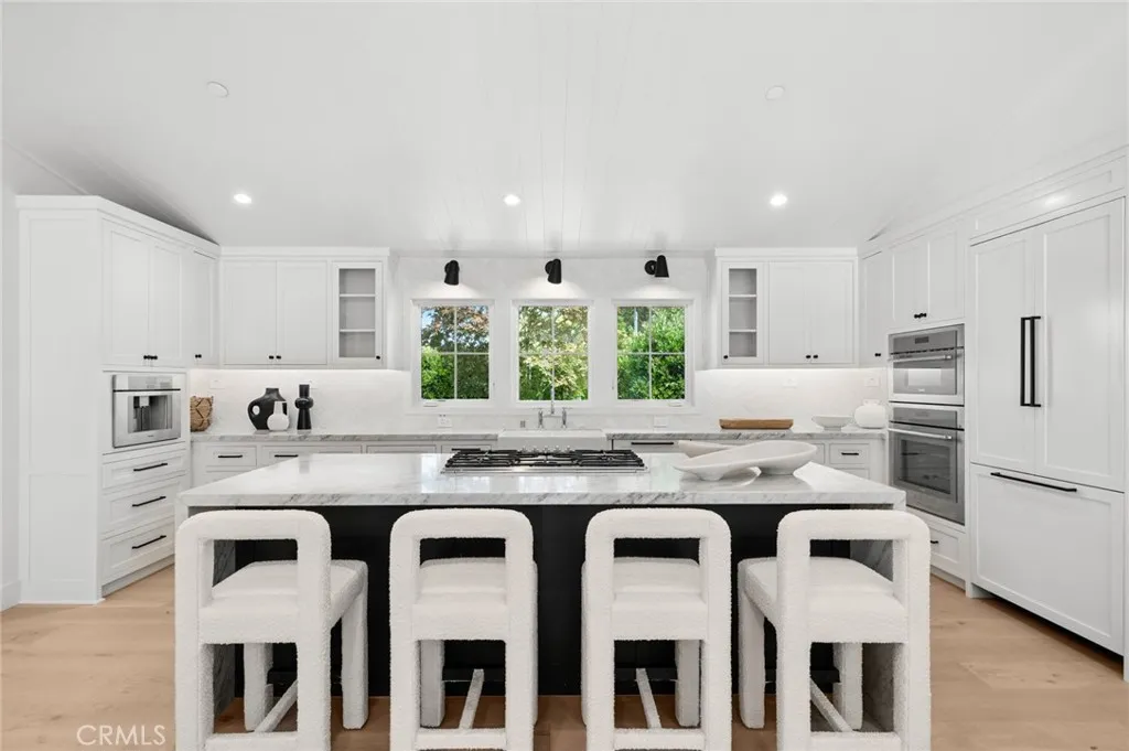 Experience the essence of refined coastal living in this newly reimagined single-level Laguna Beach residence. Set on an expansive 10,800 sq. ft. lot, this approximately 2,057 sq. ft. home has been meticulously redesigned to blend timeless sophistication with coastal modern design. The airy, open layout showcases four generously scaled bedrooms and three-and-a-half elegantly finished baths, including a serene primary suite with a beautifully designed walk-in closet. At the heart of the home, the chefs kitchen features bespoke shaker cabinetry, premium Thermador appliances, and a large waterfall stone island that anchors the space while flowing seamlessly into the light-filled living and dining areas. Large front and back yards extend the living space outdoors, creating an effortless indoor-outdoor connection ideal for coastal living. Step outside to a private backyard retreat, perfect for soaking in ocean breezes and serene surroundings. Just moments from Top of the World Elementary, Alta Laguna Park, hiking trails, and only minutes to Lagunas beaches, galleries, boutiques, and restaurants, this home is a rare find offering an unparalleled Laguna Beach lifestyle.