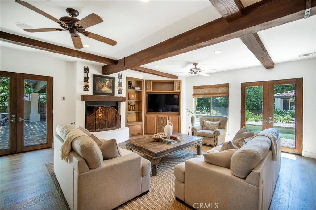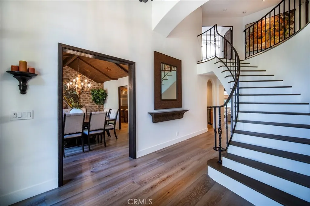 Nestled in one of San Juan Capistranos most desirable neighborhoods, this private custom equestrian-zoned estate seamlessly blends Spanish Colonial architecture with modern luxury. Recently remodeled, this exceptional residence offers an unmatched lifestyle of sophistication, comfort, and seamless indoor-outdoor living, designed with exquisite craftsmanship, resort-style amenities, and an unrivaled sense of privacy. Step into a grand foyer, where a sweeping staircase and beautifully curated interiors set the stage for refined living. Wide-plank hardwood floors, custom millwork, and designer lighting create an atmosphere of understated opulence. The formal living room, reimagined as a billiards lounge, and the striking beamed-ceiling dining room flow effortlessly, enhancing the indoor-outdoor connection. The gourmet kitchen, designed for culinary excellence and casual gatherings, features a Sub-Zero refrigerator, Thermador double ovens, a six-burner cooktop, dual Bosch dishwashers, and an expansive two-tiered island. The 4,500 sq ft floor plan is designed for both comfort and grandeur, offering three private ensuite bedrooms, including a main-level primary suite with French doors opening to a tranquil garden patio with a soothing fountain. The upstairs primary retreat is a private sanctuary, featuring a fireplace, private balcony, and a spa-inspired bath with a soaking tub, oversized shower, dual vanities, and a custom walk-in closet. In addition, a detached two-room casita with a private entrance, full kitchen, vaulted ceilings, surround sound, and spa-like bath provides a