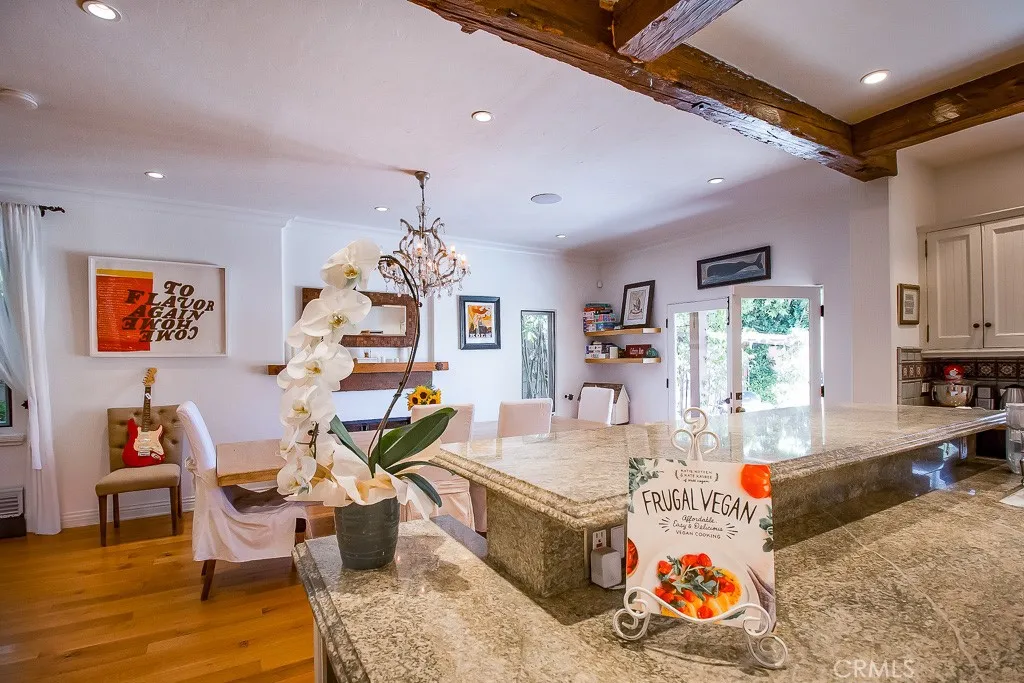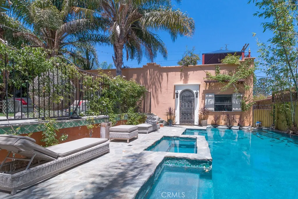 NEW PRICE!! This custom-built artist's estate sits atop Grand View Blvd offering city and ocean views. Almost a 10k lot with yard, pool and spa. Main house has 4 bedrooms and 5 bathrooms, and a celebrity worthy primary suite with 2 patios, views, a wood burning fireplace, and calming cross-thru ocean breezes. A full-sized guest house with kitchen and bath, plus a viewing/entertainers deck above with almost 360-degree views from the Hollywood sign to the sea. California charm abounds with foliage and new-vintage touches of reclaimed solid wood beams and doors. The indoor-outdoor living spaces include multiple decks and private patios. The foyer leads to a living room with a fireplace framed by imported Moroccan tile. Carved wood doors open to the family room, dining room, and kitchen. Upstairs, the private and spacious primary suite boasts a sitting area, a spa-like bath, and viewing decks at the front and rear, complete with an outdoor fireplace. Three additional bedrooms are located on the first floor. The open kitchen, with its center island, custom tile work, and cabinetry, connects to a formal dining area that leads to an entertainer's dream yard. The backyard includes a brick pizza oven, large patio and yard, saltwater pool/spa, and a massive rooftop deck and play space, making this a One-of-a-kind offering not to be missed!