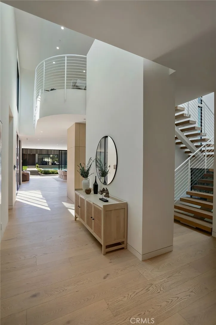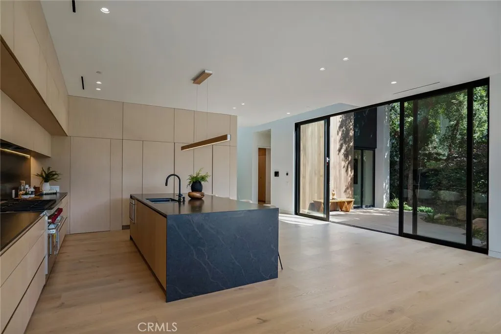 Enter an environment where the warmth of organic modern architecture meets stunning new luxury construction. Elegant 6BR + 5.5BA property sits on an almost 11,000 sqft lot + includes a 1BR + 1BA guest house w/its own address. Gorgeous open floor plan features sleek kitchen w/center island, quartz counters, white oak cabinets + stainless steel appliances including a Wolf 8 burner range w/double oven. Living room w/fireplace has huge sliders leading out to the extensive grassy grounds. Kitchen overlooks a private deck area w/Japanese landscaping. Both the kitchen + dining area have custom designed light fixtures. The gentle curves of the home's exterior can be found in details throughout the house, such as the fireplace, the curved corners of rooms + even the concrete steps throughout the exterior. The opulent primary suite has everything. Huge floor to ceiling windows slide open for viewing the amazing grounds. A separate area for lounging opens to a spacious side balcony. Two custom walk-in closets have extensive built-ins. Gorgeous primary bath w/soaking tub has an oversized shower w/dual rain heads + seating benches, plus double sinks + vanity area. Second level includes a sitting area/library w/dramatic skylight + 2 more ensuite BR's. An airy floating staircase connects the two levels, w/another 2BR + 2BA below. The grand living space is accentuated w/high ceilings, extensive use of glass + is infused w/a spectacular amount of natural light. Step outside + encounter the exceptional park-like oasis. An immense pool w/spacious baja shelf also includes a spa. Amazing outdoo