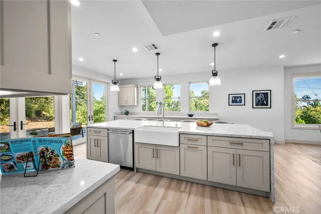 Perched atop Sierra Madres coveted north hillsidewhere new construction hasnt appeared in decadesthis brand-new custom home reimagines the classic contemporary in a crisp palette. The upper level is clad in board-and-batten siding, while a standing-seam metal roof crowns both the welcoming porch and the three-car garage, seamlessly integrated into the faade. Clean-lined, oversized windows and simple trim frame sweeping canyon and city-light vistas beneath the soaring silhouette of Mt. Wilson. Inside, 3,783 square feet of living space unfolds under vaulted ceilings punctuated by designer light fixtures. Four bedrooms and four-and-a-half baths flow from an open-plan great room into a gourmet kitchen complete with luxurious quartz countertops and abundant natural light. Every surface and sightline has been thoughtfully arranged to enhance the homes serene surroundings. Situated at the north end of Baldwin Avenue in one of the West Coasts most charming, family-friendly towns, youre just a few minutes stroll from downtown Sierra Madres boutiques, cafs, and fine dining, and a short drive from Arcadia and the 210 Freewayputting Pasadena and Downtown L.A. within easy reach. For those seeking a different layout or style, our sister homes at 620 Baldwin Court and 608 Baldwin Court offer their own fresh interpretations of modern farmhouse living.