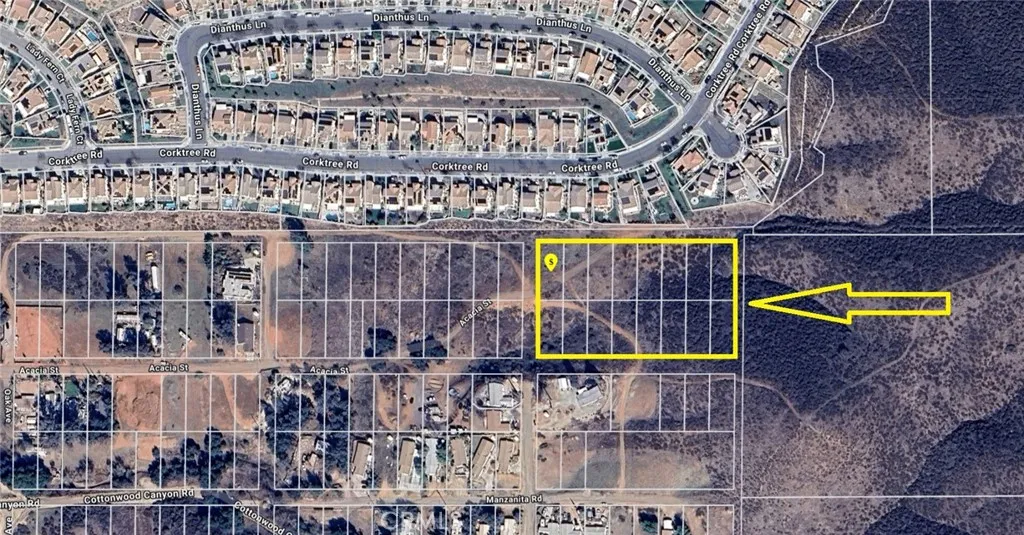 Offering a collection of 16 contiguous lots adding up to 3.3 Acres in the growing city of Wildomar, in Riverside County. Located north of the 15 Freeway and Cottonwood Canyon Road, bordered by Acacia St., Hemlock St., Spruce St., Palm Ave. Power is nearby, the topography varies from flat to rolling, offering scenic views and flexible development potential. Short drive to I-15, I-215, and Hwy 74, Proximity to Loma Linda University Medical Center, Mt. San Jacinto College, shopping centers, and schools. Located near Canyon Lake, Menifee, and Lake Elsinore. Whether youre looking to develop one home or invest in multiple parcels, this is an excellent opportunity in one of Southern Californias fastest-growing regions. Enjoy privacy, convenience, and beautiful surroundings, not quite off the grid, but close to nature. Buyer to verify land use and development potential with the City of Wildomar Planning Department. APNs: APN: 361-052-001; 361-052-002; 361-052-003; 361-052-004; 361-052-005; 361-052-006; 361-052-007; 361-052-008; 361-052-009; 361-052-010; 361-052-011; 361-052-012; 361-052-013; 361-052-014; 361-052-015; 361-052-016 ; Size Gross: 3.3 Acres; Zoning: RR ; Terrain: Flat to rolling ; GPS: 33.655524, -117.233763 (West Side Boundry )