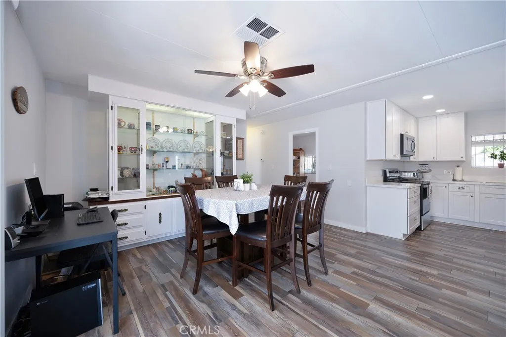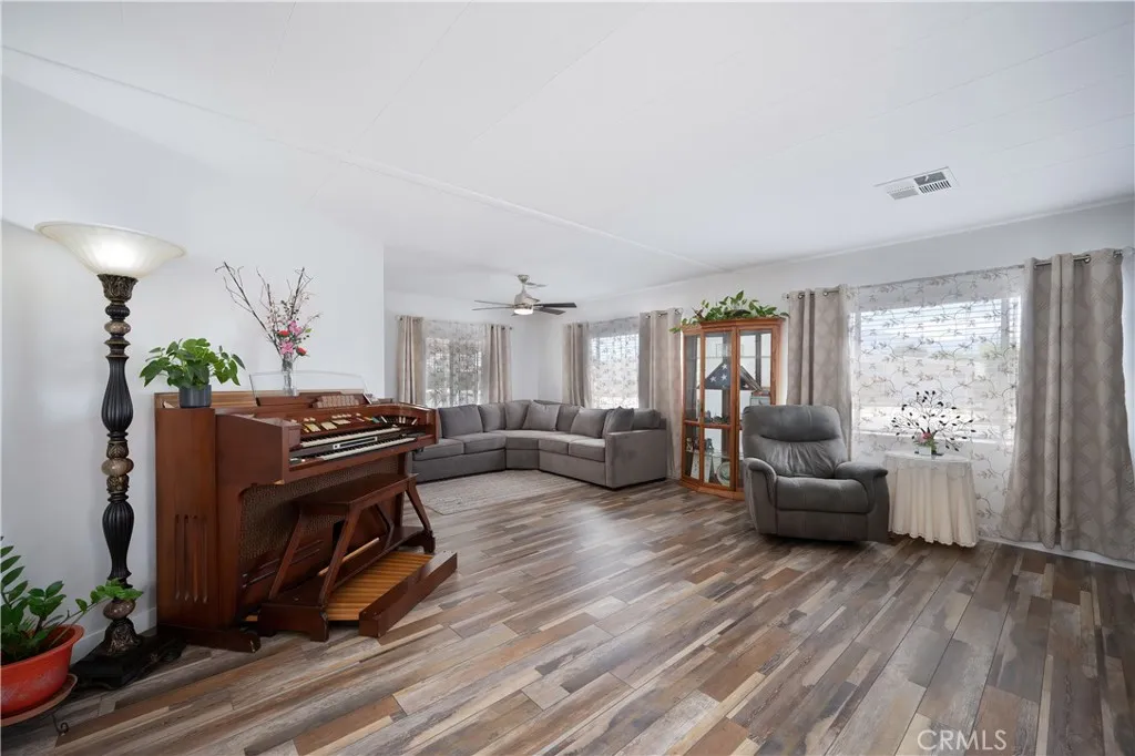 Welcome to Sierra Dawn Estates, a 55+ community where you own the land. This beautifully remodeled 2-bedroom, 2-bath home offers 1,488 sq ft of single-level living on a corner lot. Enjoy an open floor plan with new laminate flooring, recessed lighting, and an upgraded kitchen featuring quartz counter tops and soft-close cabinets. The spacious primary suite includes a tub, walk-in shower, and dual vanities. It has access to its own private porch for a great coffee in the morning or evening. Additional highlights include a sunroom, an indoor large laundry room with sink, next to storage area, and more! Newer roof, new fence, and central HVAC. Low HOA includes access to pools, spas, clubhouse, fitness center and much more! This house has it all. This home is well kept and move-in ready; close to shopping and medical facilities.