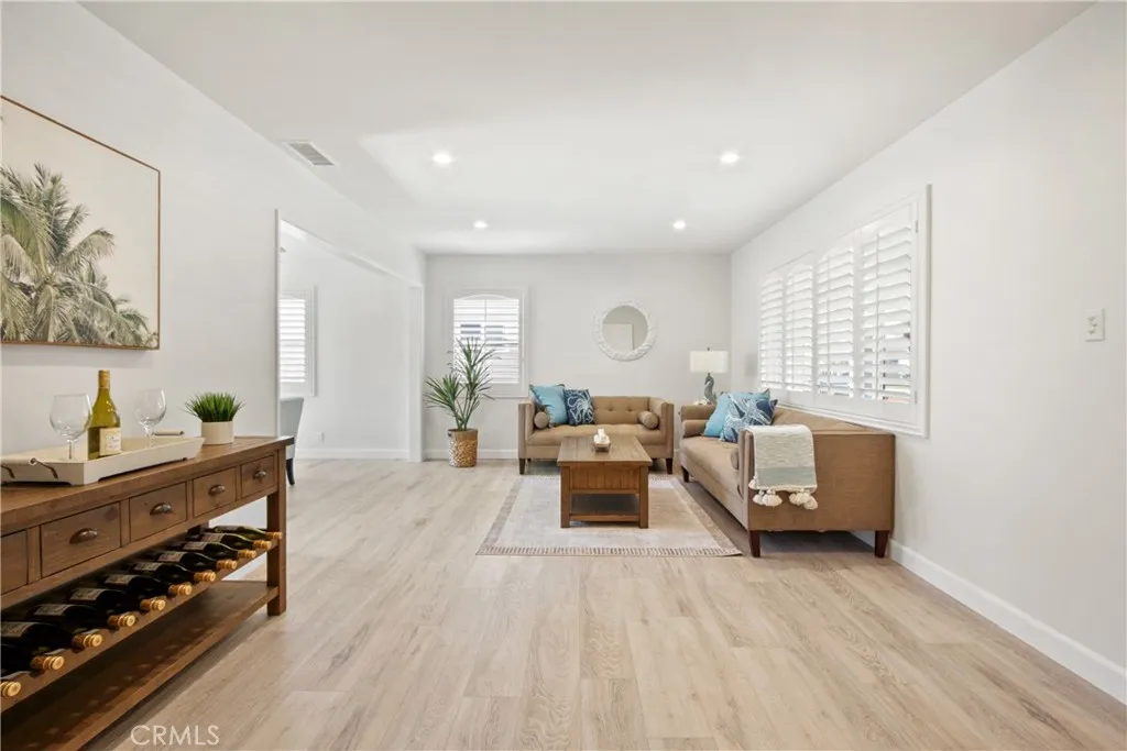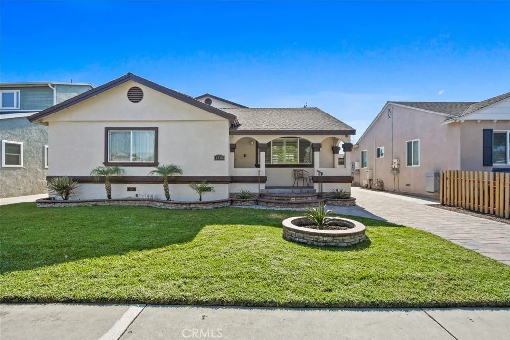 Nestled on a peaceful, tree-lined street, this beautifully updated 5-bedroom, 3-bath home offers comfort, style, and space in the sought-after Lakewood Mutuals neighborhood. Step inside to find new modern flooring, fresh interior and exterior paint, smooth ceilings, and custom wood shutters that add timeless charm. The open layout features a welcoming living room, a large dining area, and a bright kitchen with white cabinetry, new quartz countertops & stainless steel appliances, and a walk-in pantry. The main level includes three bedrooms and two full baths, including a spacious primary suite with three closets (one walk-in) and a spa-like bath with dual sinks, walk-in shower, and jetted tub. Upstairs features two additional bedrooms and a full bath with walk-in shower. The backyard is a private oasis with pavers that match seamlessly with the driveway making an expansive area that is perfect for entertaining day or night with ambient lighting, turf play area, and relaxing swim spa. Additional features include central heat and A/C, indoor laundry, and parking for up to 6 cars with a detached 2-car garage and long driveway. Close to Lakewood Country Club, Bixby Knolls, and Long Beach Exchange (LBX), this home offers both tranquility and prime access to shopping, dining, and entertainment.
