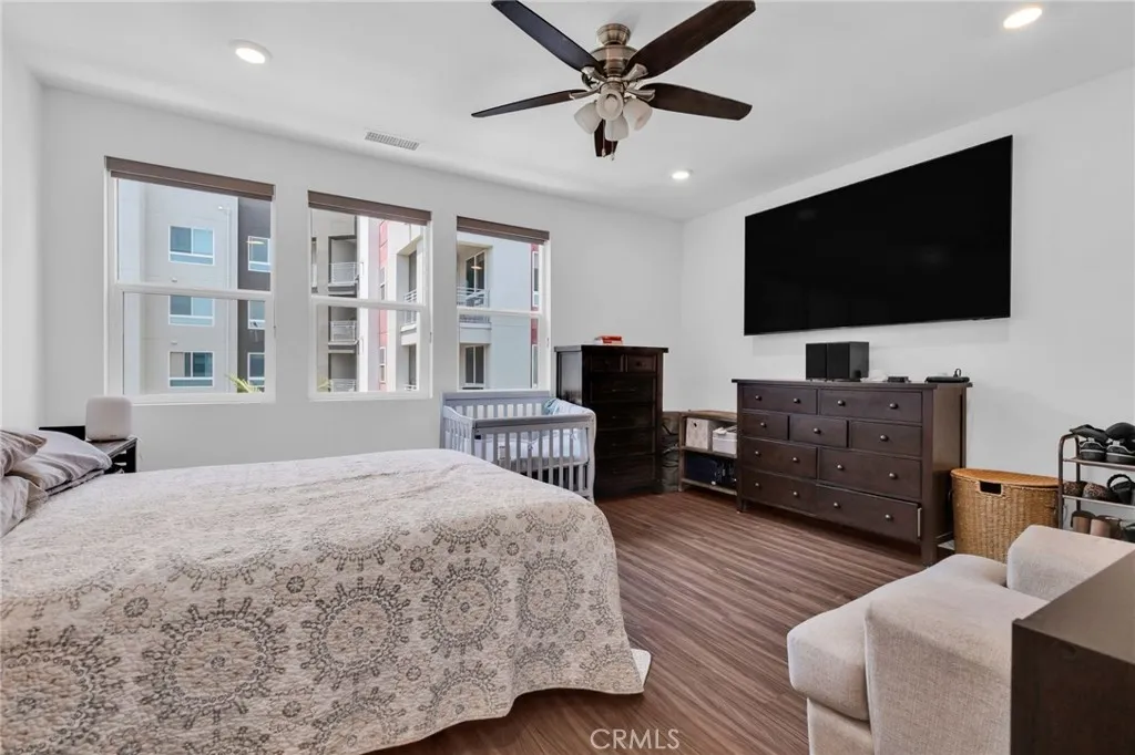 FHA ASSUMABLE LOAN: 3.75% with PRICE IMPROVEMENT: Welcome to this beautifully maintained 2-bedroom (FIRST FLOOR optional room conversion currently an office/bonus room) / 3.5+ bathroom built in 2022 in the desirable city of Orange. Features a versatile space on the first floor with its own bathroom and split HVAC system. Great if you wanted to convert to a private mother-in-law suite, or it could be used as a private office space or baby room. Pets are no problem. The unit has luxury vinyl water-resistant flooring throughout the unit and a patio. Keep your electric bills down with paid-off solar panels. The open-concept living and dining area is filled with natural light and added lights, boasting updated flooring and modern finishes. The spacious kitchen includes a farm-style sink, abundant cabinetry, a breakfast bar, and stainless-steel appliances. The large primary suite offers a well-sized room with lots of windows and a ceiling fan attached to an updated en-suite bathroom with dual sinks and a walk-in closet with dual side mirrors for ultimate comfort and privacy. The unit boasts full washer and dryer hookups, making it convenient to do laundry, and plenty of added storage. The second room also has a ceiling fan and an en-suite full bathroom with lots of natural light overlooking the scenic pool area. Additional highlights include an attached 2 car garage with direct access and added storage. Tankless water heater and central air and heat for the entire unit Perfectly situated minutes from The Outlets at Orange, CHOC Hospital, UCI Medical Center, schools, dining, Chapm