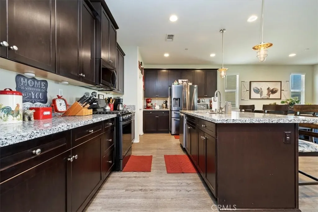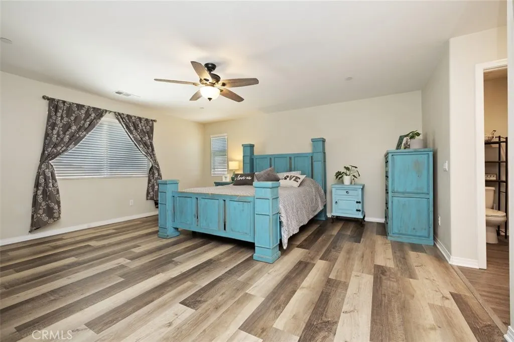 **Like a Model Home... this Wonderfully Upgraded 5 Bed/3 Bath Home is located on a quiet interior street within the Exclusive Gated Olivewood Community. *****FHA Loan is assumable and at a very low interest rate of 3.25%! Buyers may also qualify for a 15k down payment assistance loan that is forgivable over 5 years.***** The Most Desirable floorplan in the Neighborhood, this home features a Sought After First Floor Bedroom and Full Bath. Very Open Layout and High Ceilings and Natural Light create a comfortable space in the Family Room, Dining and Kitchen that feels Expansive! The Gorgeous Kitchen has been Upgraded with a Stunning Granite counter tops, Beautiful Stainless-Steel appliances, Walk-In Pantry and Large Island with Sink and additional Seating that Opens to the Family Room. Beautiful Laminate and Fresh Paint throughout the Home! Includes a Quiet Cool whole house fan that can dramatically reduce your A/C usage, plus fire sprinkler system and rain sensor sprinkler system cut-off. The spacious backyard is significantly larger than surrounding homes. It includes a Very Large Covered Alumawood Patio, Potential RV Parking, Tough Shed and High-End Hot Tub included. The Massive yard is lined with dozens of Fruit Trees, very large Artificial Grass space with built in drains... Perfect Space to Entertain all your Friends and Family! Olivewood Community features Amazing Amenities like Clubhouse, Pool, Gym, Parks, etc. Located minutes off the 10 & 60 FWY for and excellent commute location. Come Take a Look and Fall in Love!