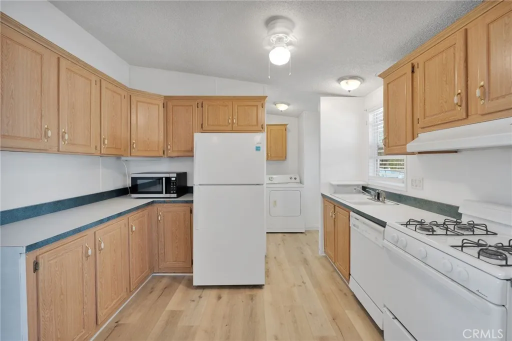 Charming turn-key double wide manufactured home offering 3 bedrooms, 2 bathrooms, and 1,080 sq ft of comfortable living space. From its inviting curb appeal to the cozy porch with awning and covered carport, this home is as practical as it is beautiful. Step inside to discover abundant natural lighting highlighted by colonial-style windows and a pop-up vaulted ceiling tray with a beautiful accent window that creates an airy, elegant ambiance. Ceiling fans, central HVAC, and blinds throughout ensure year-round comfort while lush neutral carpeting in the bedrooms and warm-toned flooring in the common areas create a welcoming aesthetic. The kitchen features warm cabinetry, a timeless built-in corner pantry cupboard, and matching cabinetry that continues into the laundry room and both bathrooms for a cohesive, designer look. The laundry room offers additional storage and convenient access to the covered carport through an entry door. This home is move-in ready perfectly blending style, comfort, and function -- all while offering a desirable price point!