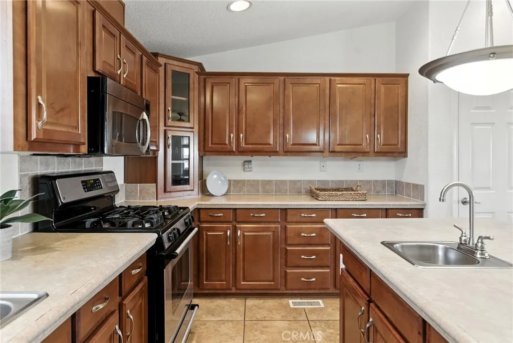 Retire in style!!! Loaded, upgraded and awesome 1782sf split wing 3 bed, plus office, 2 bath manufactured home 55+. Huge living room with textured walls, vaulted ceilings, fireplace, upgraded 18 tile flooring throughout the living areas, upgraded light fixtures and recessed lights. Large kitchen with lots of cabinets, island counters, stainless steel appliances, 2 sinks, spacious dining area, Oversized laundry room, Spacious Master bedroom, master bath includes 2 separate sinks, separate shower and bathtub. Enjoy deep driveway, included storage shed, ramps, fenced in yards and a huge savings over PG&E with this leased solar system.