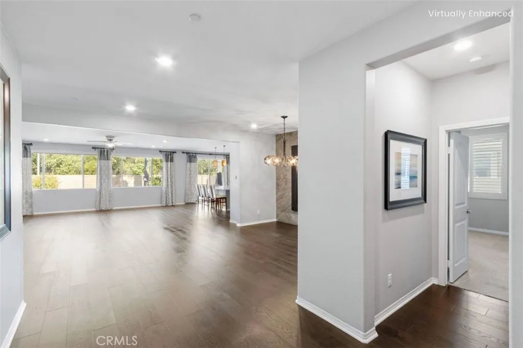 Gorgeous Former Model Home in the Beautiful City of Winchester! Welcome to this stunning 5-bedroom, 3.5-bathroom single-story home located in the vibrant and growing community of Winchester. Situated in a quiet neighborhood within walking distance to schools, this beautifully upgraded home offers an ideal blend of comfort, modern design, and everyday convenience. Step inside to discover a spacious open-concept floor plan filled with high-end finishes. This former model home showcases hardwood plank flooring, elegant tile, and plush upgraded carpet with premium padding in all bedrooms. Fresh designer paint and custom shutters add a refined touch throughout. The chef-inspired kitchen is a true highlight, featuring rich dark brown shaker cabinets, granite countertops, a large eat-in island with pendant lighting, and an oversized walk-in pantryperfect for meals and entertaining. Additional features include a versatile den, whole house fan, tankless water heater, and ample closet space throughout. Both front and back yards are designed with a low-maintenance drip system and offer outstanding curb appealperfect for easy outdoor living. Located in the top-rated Temecula Valley School District and just minutes from shopping, dining, and the world-famous Temecula wineries, this home truly has it all. Dont miss your chance to own this exceptional, turn-key home in one of Winchesters most welcoming neighborhoods!