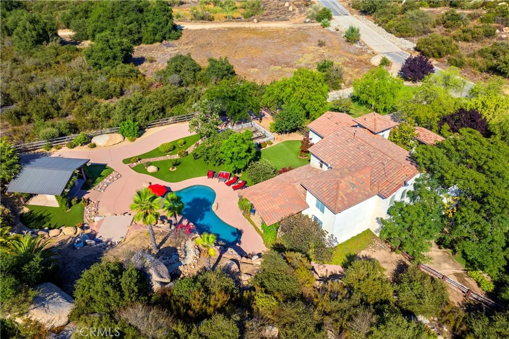 Price Improvement! Motivated sellers! Welcome to this custom-built two-story retreat nestled in the serene hills of La Cresta Highlands, offering 3,668 sq ft of thoughtfully designed living space across nearly 5 acres of lush, natural surroundings and featuring horse amenities with access to trails around La Cresta Highlands. Interior Features 4 bedrooms, including a luxurious master suite, and 3 full + 1 half baths provide space and comfort for the entire family. Newly installed carpet upstairs, elegant hardwood flooring flows throughout living areas, enhancing the homes warmth and style. Soaring voluminous ceilings and a spacious great room create an inviting, airy ambiance. A chefs kitchenperfectly outfitted for both daily meals and entertainingconnects seamlessly to adjacent living spaces.Seamless Indoor-Outdoor Living. Expansive la cantina doors open to a covered patio, inviting effortless hosting and relaxation in any season . Outdoor Entertaining Oasis, the backyard feels like a private resortcomplete with a Baja shelf pool, grand natural boulders, and a cascading waterfall that sets a tranquil backdrop ideal for entertaining and privacy. An outdoor entertainment kitchen elevates al fresco gatherings, while the surrounding landscape provides a stunning and serene setting. The home comes fully wired for surround sound, enhancing both indoor and outdoor living experiences. Enjoy energy efficiency with a fully paid SOLAR and a battery storage system. Strong curb appeal greets you at arrival, reflecting care and attention to design. Situated in a private, quiet enclave,