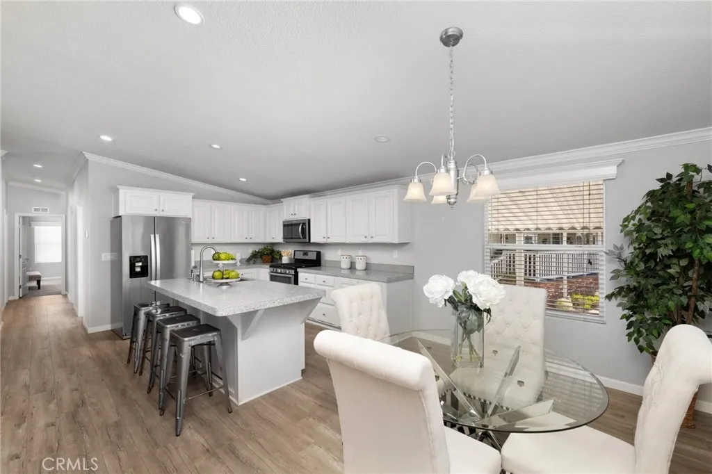 Located in The Fountains - Senior Living Community 55+ embodies an exceptional blend of comfort, community, and natural beauty. This stunning 2019 Fleetwood manufactured home combines modern comfort with timeless style. Featuring 3 bedrooms, 2 bathrooms, and 1,610 sq. ft. of single-level living space, its thoughtfully designed for convenience and function. The vaulted, open-concept living area creates a bright and welcoming atmosphere, perfect for both relaxation and entertaining. The chef-inspired kitchen showcases stainless steel appliances, a large center island, abundant counter space, and seamless integration with the dining and living rooms. The spacious primary suite offers a walk-in closet and private bath, while a large laundry room with sink adds both functionality and storage. Additional highlights include central A/C and heating for year-round comfort, elegant crown molding, stylish window coverings, an expansive wraparound porch with vinyl railing, and a full-length covered carport. The side yard features a concrete patio, an ideal spot to relax and enjoy the beautifully landscaped surroundings. Life at The Fountains, a desirable 55+ community, means more than just a beautiful home. Residents enjoy exceptional amenities, including a clubhouse, sparkling pool and spa, fitness center, library, and game room, providing endless opportunities to stay active, social, and engaged. This move-in ready home offers the perfect blend of comfort, community, and lifestyle in the heart of La Verne.