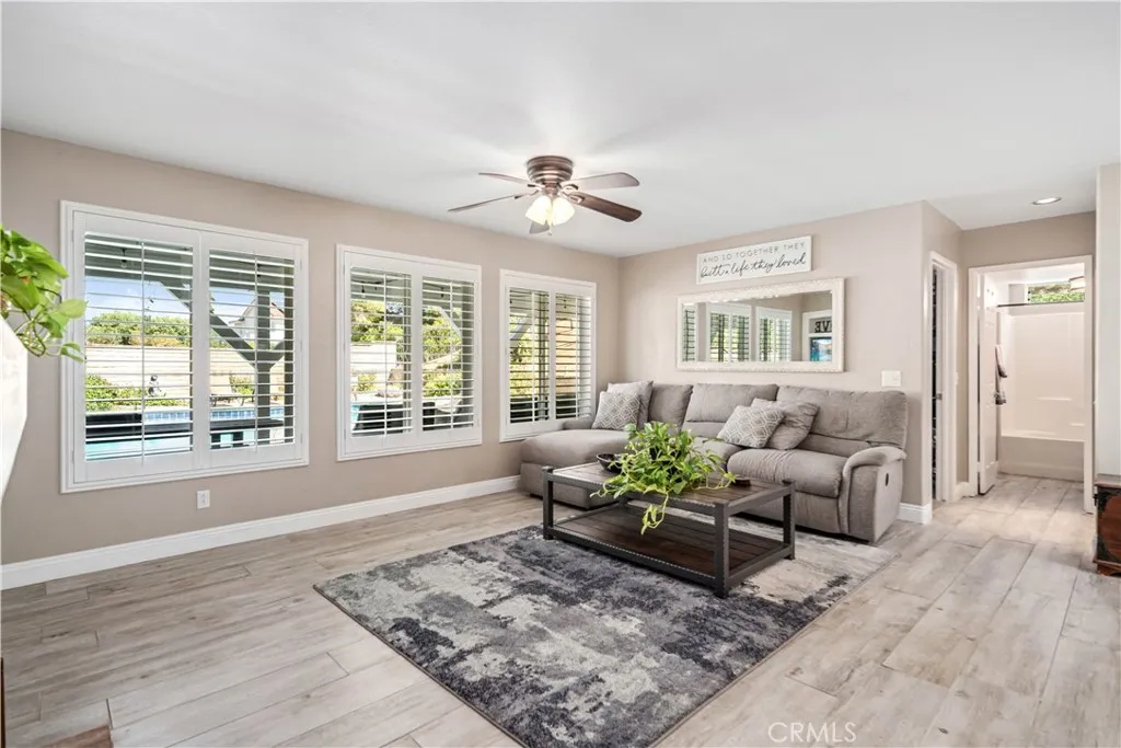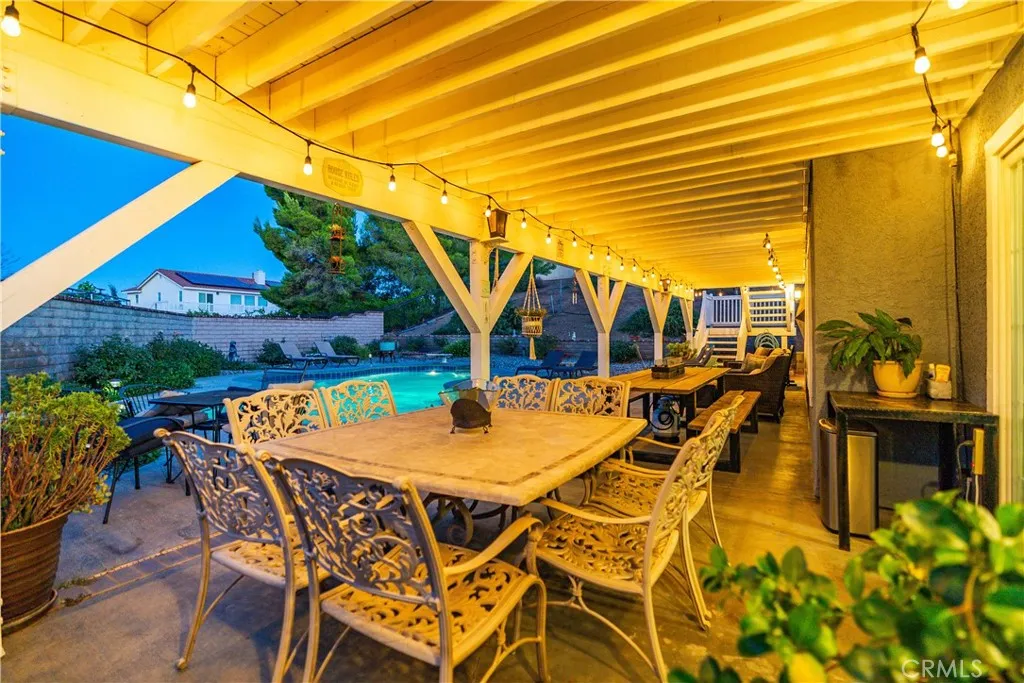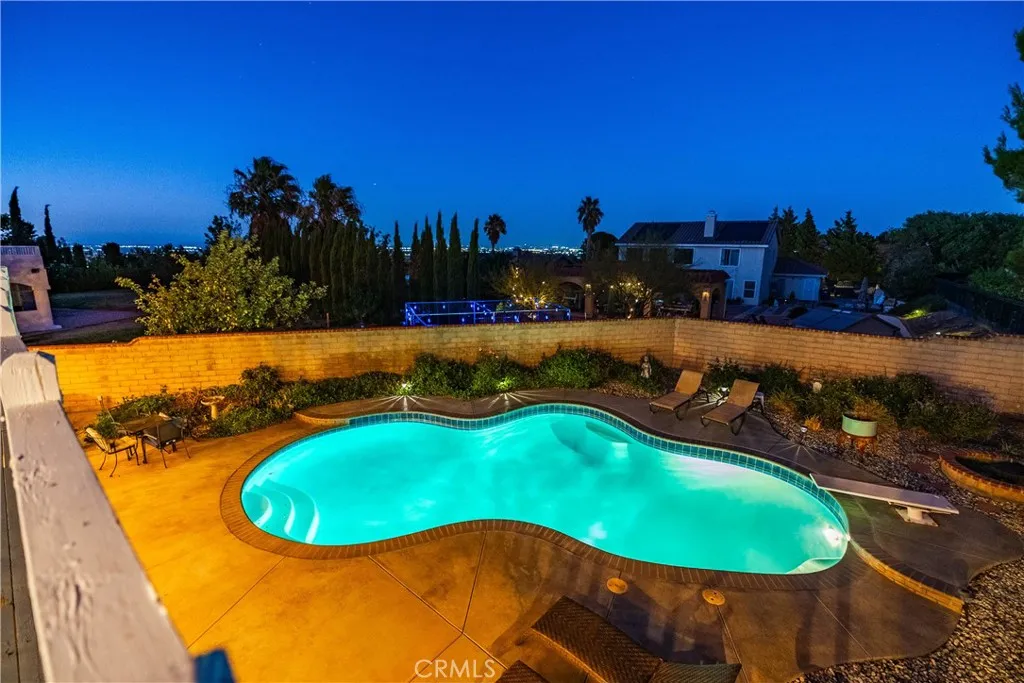 ***LIVE BEAUTIFULLY*** Welcome to this stunning six-bedroom estate located in the highly desirable, family-friendly gated community of Bella Vista in West Palmdale. Perfectly situated on a quiet cul-de-sac and set on over half an acre, this impressive property offers the perfect blend of luxury, comfort, and privacy. From the moment you arrive, the gated front yard, three-car garage, paved RV access, and striking custom wrought iron double entry doors set the tone for the elegance found throughout the home. Inside, soaring high ceilings and abundant natural light greet you at the entry, highlighting the grand double adjoining staircase. The formal living room provides a sophisticated space for entertaining, while the spacious family room features a cozy fireplace, custom mantle, and built-ins. A downstairs bedroom with backyard access and a full bath add convenience for guests or multigenerational living. The spacious kitchen is a delight, showcasing granite counters, a six-burner stove with a custom hood vent, stainless steel appliances, a large pantry, and a generous center island with wraparound barstool seating. Crown molding, plantation shutters, and new tile flooring enrich the home with timeless character and modern upgrades. Upstairs, the primary suite offers a luxurious retreat with vaulted ceilings, a sitting area (formerly the sixth bedroom, which can easily be converted back), and direct access to an expansive private balcony with breathtaking views. The remodeled primary bath features granite counters, upgraded tile flooring and backsplash, dual modern vanities