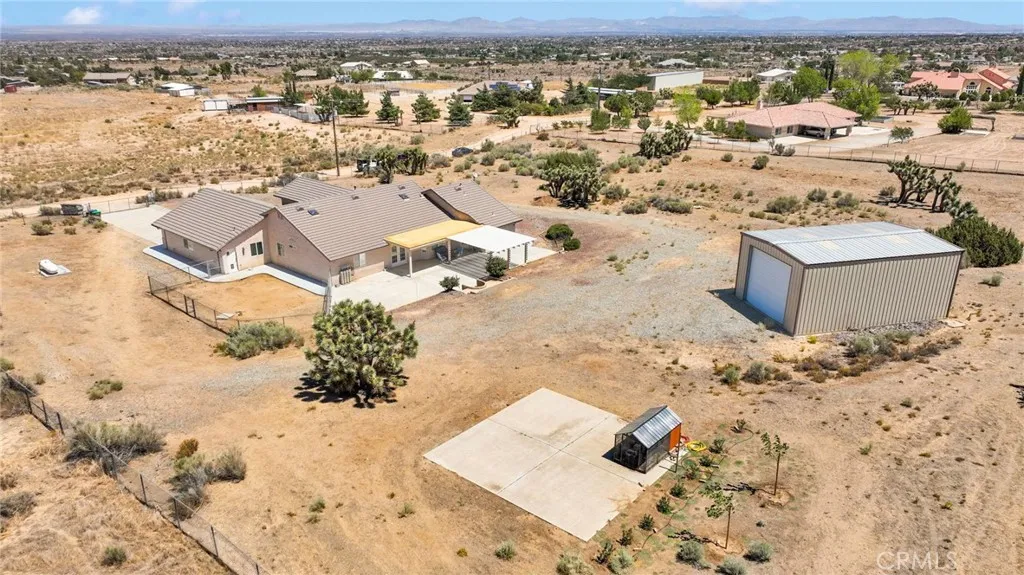 WOW!! REDUCED PRICE! Motivated Seller. Beautiful Open Concept Home with 20 x 40 HUGE RV height Metal Shop! This home is gorgeous. Big open Living, Dining , Kitchen and Bonus Room. Pellet stove to keep those winter nights cozy. Owner's suite with Huge master bathroom with soaking tub. Amazing walk in closet, double sinks, separate walk-in shower, and private water closet. Second bonus room can be used as a 4th bedroom or office. Huge Laundry Room and Walk-in Kitchen Pantry. Unique pot shelves and ceiling above Kitchen, Bedroom, and Family room, Enjoy the majestic views of the San Gabriel Mountains and the High Desert Valley on your Huge back patio, which is partially covered and leads to a wraparound sidewalk. Fully fenced Dog yard. Large Chicken Coop stays all on 2.4 acres which is fully fenced. This is a certified Wildfire Prepared Home.