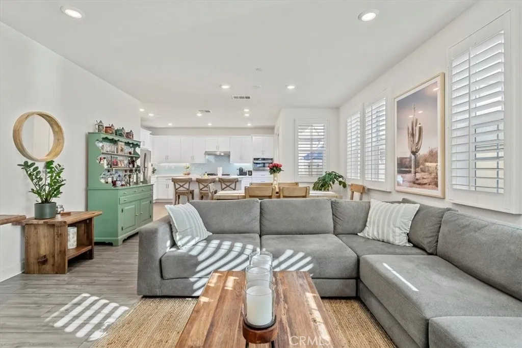 This is a Stand Alone Two Story Home in a Planned Unit Development - "Exquisite turnkey inside and out". immaculate 3-bedroom 3 bath home located in a cul-de-sac style design of a newer developed community with a multitude of amenities. Natural sunlight throughout enhancing your open concept living, dining and kitchen that leads to a customized, low maintenance back yard. Family Kitchen offers incredible cabinet space including pantry, large island and quartz counters for family and entertainment. Tasteful upgrades include Flooring, Carpet, Kitchen Back Splash and Plantation Shutters throughout. Energy efficient dual pane windows, recessed lighting, Tank-less water heater, EV hook up and owned solar system (NOT LEASED) providing updated energy efficiencies. Primary bedroom features an ensuite with his/her sinks, natural light walk-in shower, private lavatory and spacious walk-in closet. Second floor offers a Multipurpose area for a sitting area, office, TV room or childrens play area. Conveniently located Laundry Room with ample cabinetry and quartz counter (Washer/Dryer included). Escape to a lifestyle of amenities that are conveniently close and only a short stroll away - yet distant from the background activity of swimming pools, spa, play areas, putting green, dog park and gym. Host your own event in a beautiful and spacious Banquet Room with optional available services or use one of several areas for business, social activity and neighborly interaction. Location of this home is just a casual walk from The Groves Community to a variety of restaurants, shopping and publi