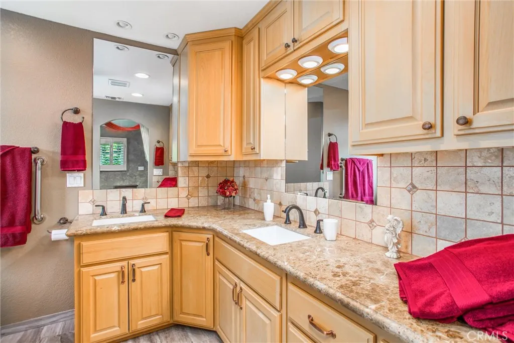 This is an amazing home with so much to offer and holds many fun memories for the children who grew up exploring the oversized land. Entering the main floor, you will find the living room and formal dining area with a sliding glass door from the living room leading onto a deck which overlooks the entire yard along with a garden for raising fresh vegetables. Walking into the kitchen you will see all the upgrades with granite counters, stainless steel sinks, loads of cabinetry along with a 5 burner gas range. There is also access into the kitchen from the entry with a pocket door. To make the move easier the refrigerator is included. Just steps away into the laundry room there are cabinets, a washer and an electric dryer, but if you prefer there is a gas outlet for a dryer. For convenience there is a half bath off the laundry room, and there is a door and security screen door to the outside. Altogether there are 3 security screen doors. Up the stairs from the entry are two bedrooms, an upgraded full bath with 2 sinks, as well as a family room with ceiling fan and a wood burning fire stove. Another deck leads out from the family room. The third level is where you will find the great primary bedroom with a separate spacious sitting area or office. There is a wonderful walk-in closet, and another upgraded bathroom that you will admire with double sinks, lovely granite counter and a huge shower. A Navien Tankless hot water heater was installed about 6 months ago, and to save on electricity there is a whole house fan. For outside entertaining there is a barbeque that is included a