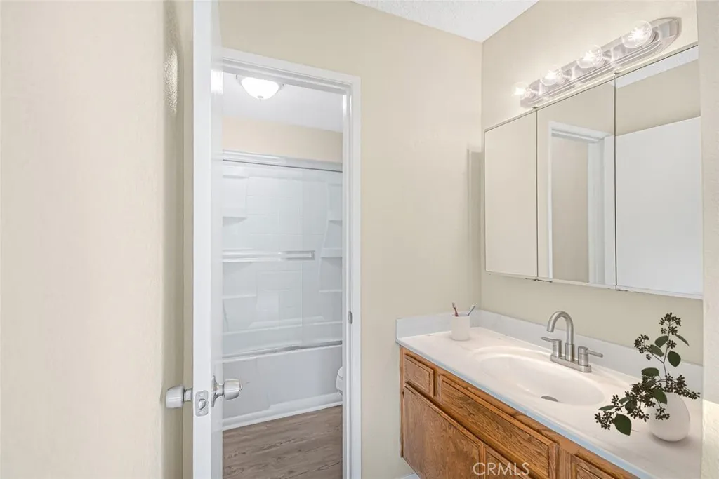 This beautifully renovated home is move-in ready and offers fresh updates throughout, starting with full interior paint that brings a clean, modern feel, paired with crisp new exterior trim paint for a polished look. The updated kitchen is a showstopper, featuring sleek quartz countertops, brand new stainless steel appliances, a new stainless steel sink, and a modern faucetperfectly blending style and functionality. Brand new plank flooring flows through all common areas and bathrooms, while plush new carpet adds warmth to the bedrooms, ensuring comfort in every room. The upgrades continue with all-new plumbing and light fixtures, creating a cohesive and contemporary atmosphere throughout. Enjoy both formal and casual spaces with two separate living areas, a dedicated dining area, and a cozy family room complete with a gas fireplace. Central heat and air keep the home comfortable year-round, and the 2-car garage provides convenient parking and storage. The master bedroom is a private retreat with its own slider to the backyard patio, a tub/shower combo with glass doors, new toilet and faucets, and mirrored closet doors. Step outside to a large backyard enclosed by sturdy block walls, with a covered patio that overlooks the spacious yardperfect for entertaining or letting the kids and pets run free. Located in a great neighborhood close to schools, parks, shopping, and more, this is a rare offering you won't want to miss. Come see this stunning home before it's gone!