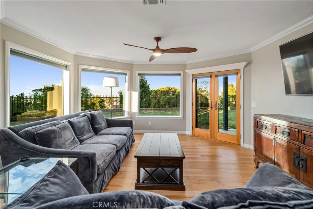 Amazing custom home located in the prestigious Godde Terrace Estates with breathtaking valley views! Enter through a grand double-door entry into a home filled with wood flooring, crown molding, and natural light. The gourmet kitchen features an 11-foot multifunctional quartz island, dual sinks, skylights, Fisher & Paykel 6-burner range with double ovens, wine fridge, refrigerator that stays, built-in spice cabinet, trash drawer, and a walk-in pantry. The kitchen opens to the family room, both showcasing incredible views. The formal living room highlights a one-of-a-kind fireplace and picture windows, while the dining room leads to a backyard with covered patio, built-in BBQ, and fire pit. All bedrooms are conveniently located on the first floor, including the luxurious primary suite with fireplace, exposed beam ceiling, direct patio access, oversized garden tub, updated shower, dual vanities, and a cedar-lined walk-in closet. Upstairs, the loft has been transformed into an entertainer's retreat with a bar, theater room (all theater furniture to stay), and an outdoor deck with more stunning views. Additional highlights include a whole-house water softener, marble finishes in laundry and bathrooms, RV access with cleanout, and a recirculating pump. A one-of-a-kind property you won't want to miss!