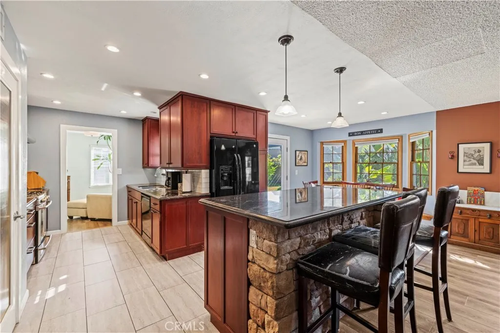 LOCATION, LOCATION, LOCATION! Dont miss this Spacious Valencia home in the desirable Del Valle neighborhood! Youll love the welcoming green lawn, mature shade tree, and brick-and-concrete driveway leading you into the home. Inside, a welcoming living room with formal dining area centers around a cozy fireplace ideal for entertaining, complemented by newer flooring throughout the main level. Custom built-in area opens to the large family room with a raised-hearth fireplace and surround sound speakers for enjoying time with family and friends. The remodeled and extended kitchen boasts high ceilings, upgraded cabinetry, granite countertops, a center island, walk-in pantry, and abundant storage, plus a sunny breakfast nook with backyard access! Upstairs, the generous primary suite offers a walk-in closet and ensuite bathroom, while three additional bedrooms provide ample space and share a full bath. The home also includes a convenient indoor laundry room. Notable upgrades include Milgard double-pane windows throughout most of the home, fresh exterior paint and newer roof installed in 2023, upgraded electrical panel, and copper plumbing. Enjoy the mature greenery in the backyard which adds privacy to the space, along with an open-beam patio cover and a layout perfect for gatherings. Ideally located near parks, schools, paseos, shopping, dining, and with easy freeway access, this home combines comfort, functionality, and an unbeatable location!