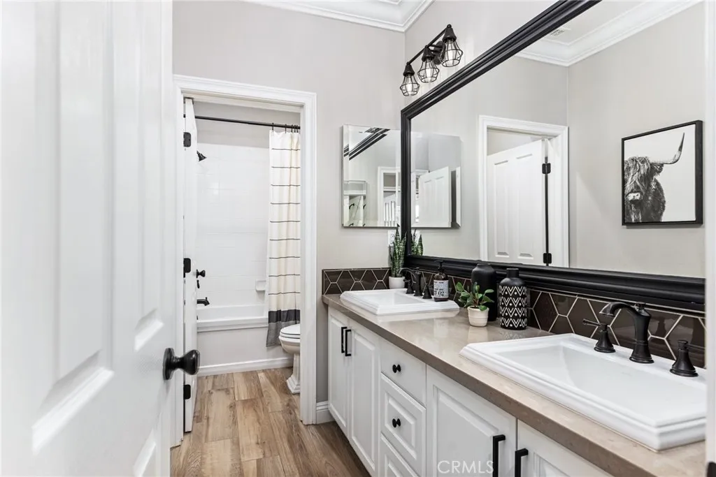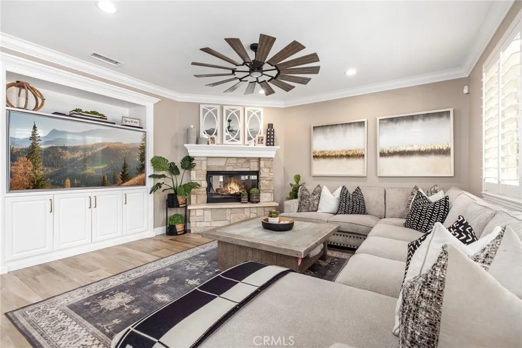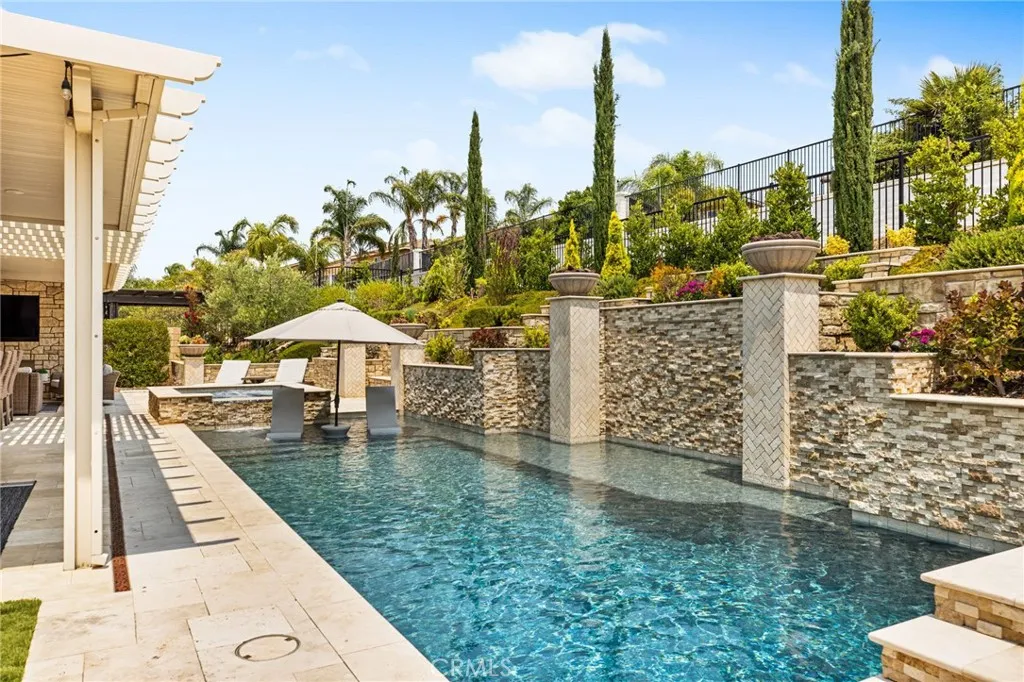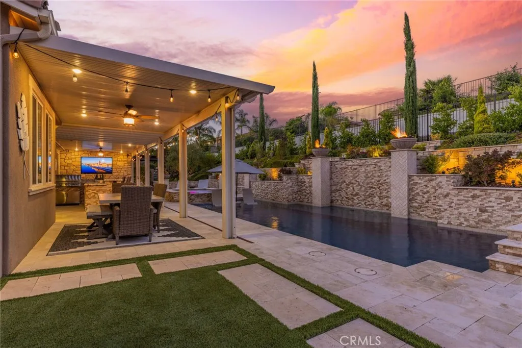 *BACK ON MARKET, NO FAULT OF SELLER, BUYER DIDN'T PERFORM* APPRAISED AT $1.4mil. No detail has been spared in this stunning 5-bedroom, 3-bath executive residence in the coveted Wolf Creek community of South Temecula. Blending timeless design with resort-style amenities, this home is built for both everyday comfort and unforgettable entertaining. Step inside to find elegant touches throughout: crown moulding, tall custom baseboards, board-and-batten feature walls, and custom paint that elevate every space. The formal living and dining rooms flow seamlessly into the chefs kitchen, boasting quartz countertops, built-in refrigerator, and high-end KitchenAid stainless steel appliances. The family room features built-in cabinetry, while the luxurious primary suite showcases a spa-inspired bath, custom built-in closet with island, and a newly refinished shower with makeup vanity and lighted mirrors. The downstairs offers a spacious bedroom suite ideal for guests or multigenerational living. Additional upgrades include oversized wood-look tile, custom built-ins, a tankless water heater, water softener, attic fan, solar, and a 3-car tandem garage with epoxy floors. The backyard is nothing short of extraordinary. Set on a quarter acre lot, enjoy the sparkling pool with oversized baja shelf, spa, bubblers and waterfall surrounded by travertine pavers and coronado stone retaining walls. Entertain in style with a full outdoor kitchen featuring a nugget ice maker, refrigerator, and built-in BBQ. Gather around multiple fireplaces and fire pits, or relax under Mediterranean olive trees and