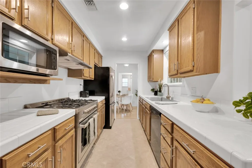 Step onto the wide front porch of this immaculate Burbank charmer and feel instantly at home. Every detail has been thoughtfully cared for in this 3 bedroom, 2 bath residence on a huge lot, featuring gleaming hardwood floors, dual-paned windows, with classic warmth and modern updates. The inviting living room with its fireplace flows to a dining area overlooking the covered patio and expansive, beautifully landscaped backyardperfect for gatherings. The remodeled bath offers a large shower, while the full bath retains timeless appeal. A spacious kitchen boasts ample counter space and stainless steel appliances, complemented by a large utility room with extra cabinets for storage or pantry use. One of the bedrooms even features its own fireplace for added charm. Outdoors, enjoy a huge backyard with mature landscaping, two storage sheds, concrete walkways, with room for a pool and even an ADU! A two story 10 foot by 12 foot insulated Tuff Shed in the yard gives you additional storage. With an attached 2-car garage, tankless water heater, newer HVAC system as of August 2024, and upgraded 200 amp electrical panel, copper plumbing, this home is as functional as it is enchantinga true Burbank gem where every detail shines.