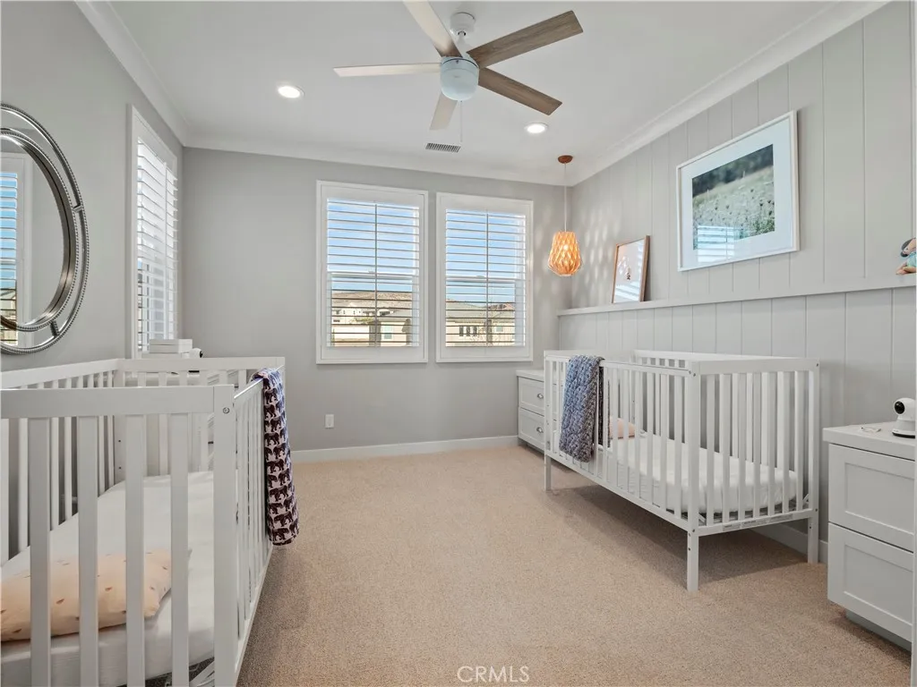 Stunning Former Starling Model Unobstructed View Home w/ 5 Beds, 4 Baths a thoughtfully designed floor plan w/ hardwood floors, premium window & wall treatments throughout, custom paint, a downstairs BD & BA, a bonus room, office, loft, owned solar, security cameras, custom millwork throughout, & over $300K in upgrades. Flowing effortlessly into the dining & living areas, the kitchen showcases a large center island, GE Cafe white & bronze appliances, Insta-hot water, a walk-in pantry, pendant lighting, & upgraded backsplash. The living room is highlighted by a sleek linear fireplace w/ a wood mantel & a sliding glass door that opens directly to the covered outdoor patio for that quintessential California indoor-outdoor lifestyle. Adjacent to the living area is a bonus room, currently styled as a club room w/ pool table, built-in cabinetry, GE Cafe beverage refrigerators, custom wall treatment, & a slider leading to the backyard w/ breathtaking views. The first level also offers a private guest bedroom w/ tongue & groove feature wall, crown molding, & its own bathroom w/ walk-in shower & chevron tile, an office w/ custom built-ins, a powder room w/ floor to ceiling arabesque mosaic tile, & a convenient mudroom round out the first floor. The grand staircase features panel molding leading you to the spacious & bright loft, complete w/ double built-in desks, & another custom wall treatment. The laundry room includes a utility sink, floor to ceiling cabinets, & quartz counters. The primary suite features gorgeous views, a coffered ceiling, & a walk-in closet, along w/ a primary