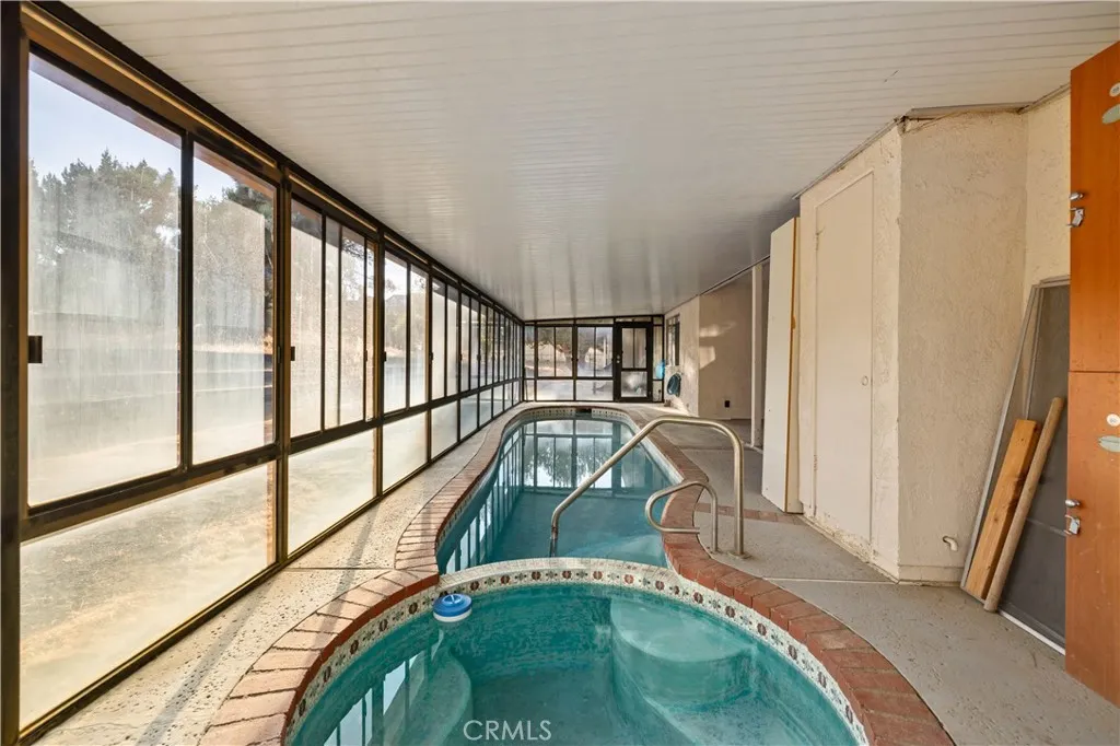 Welcome to 626 Westlake Dr! Enjoy the rare luxury of an indoor pool, perfect for year-round swimming, relaxation, and entertaining in the comfort of your own home. Located in a prestigious West Palmdale community on Ana Verde Hills, with easy access to freeway, shopping, and parks, this property combines convenience with privacy. A circular driveway framed by desert landscaping leads to the inviting home, where new flooring flows throughout and a step-down living area is anchored by a cozy fireplace. The kitchen offers ample cabinetry, abundant storage, and oversized windows showcasing stunning mountain views. This spacious property includes two fireplaces, generously sized bedrooms, modestly updated bathrooms, and an enclosed patio for extra year-round living space. Outside, you'll find an oversized 4-car garage, covered parking ideal for an RV, boat, or your favorite toys, leased solar for energy efficiency, and plenty of room to park additional vehicles, keep horses, build an ADU, or create your dream outdoor setup. With its indoor pool, private setting, and one-of-a-kind desert charm, this stunning home offers endless possibilities and is truly a must-see!