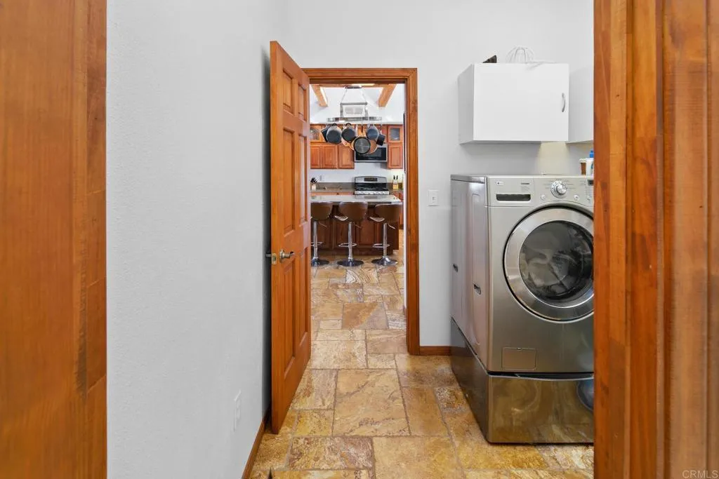 Nestled in the peaceful hills of Alpine, the stunning 20-acre Ranch offers a rare blend of seclusion, luxury, and natural beauty. This exceptional property features a thoughtfully designed custom home, expansive equestrian facilities, a private pond, and a resort-like pool and jacuzzi area, all framed by breathtaking views of the Cuyamaca Peaks and Viejas Mountains. Bordering the untouched Cleveland National Forest, it truly embodies the essence of country living with complete privacy and tranquility. The 3-bedroom, 2-bathroom home is a masterpiece of craftsmanship, showcasing solid oak flooring, imported travertine tiles, and custom wood details throughout. High ceilings with exposed wooden beams create a spacious, inviting atmosphere, while the open ranch-style layout is perfect for both everyday living and entertaining. A versatile loft provides endless possibilities, whether as an additional bedroom or a large office.The gourmet kitchen is a chefs dream, featuring a generous island, ample wood cabinetry, stainless steel appliances, and a walk-in pantry. The large primary bathroom is a retreat in itself, complete with a luxurious jacuzzi tub and tiled shower. Two additional bedrooms each offer sliding doors leading to the outdoors, while the home also includes a guest bathroom and a convenient laundry room. Designed for comfort and efficiency, the home is equipped with fire-resistant Hardie board siding, Anderson wood sash windows, a dual-zone HVAC system, and a whole-house water filtration system. The stunning surroundings can be fully appreciated from the wrap-around f