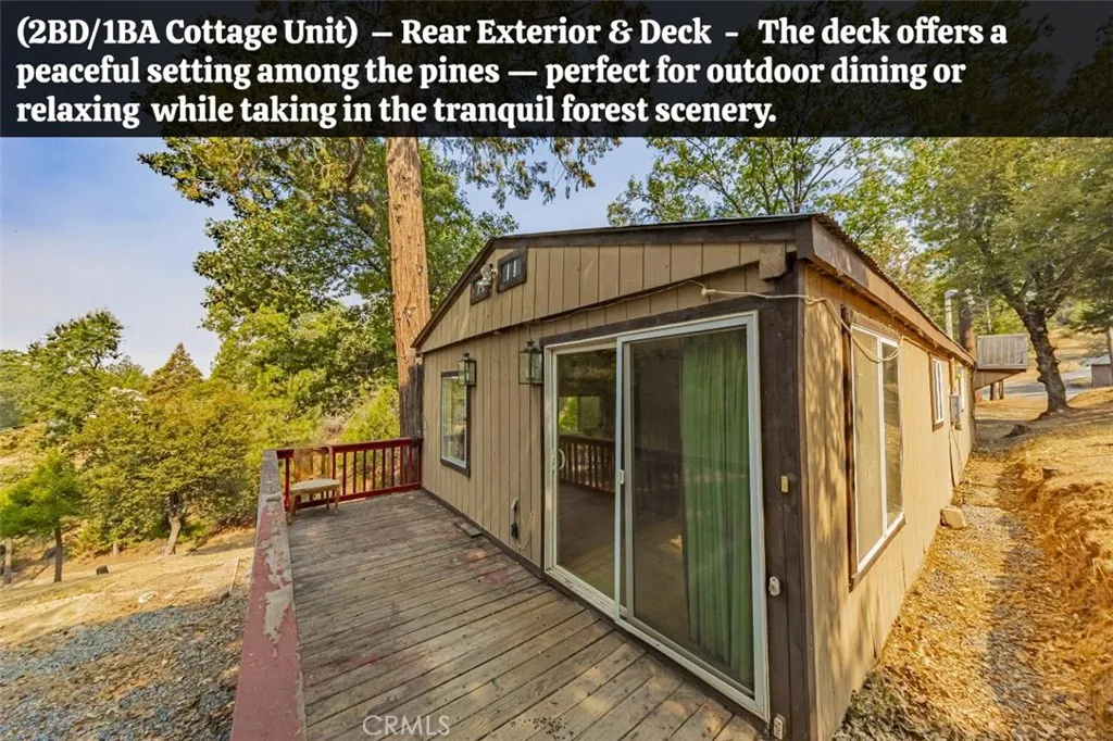 Now here is a great investment opportunity for your family to enjoy throughout the years ahead! Whether wanting a separate space for your teens or to have in-laws live on the property and have their own space, with 3 separate living spaces the opportunities are endless. The main 2 story home has beautiful views, high ceilings and lots of open space with 3 bedrooms, 2 bathrooms 2250+/- sq. ft. and expansive decking to enjoy the great outdoors, you will feel like your living in a tree house. There is a 2 car garage and under the home is a massive work space with roll up garage door having 1120+/- sq. ft. and beyond the work shop is a 1 bedroom, 1 bath 492+/- sq. ft. apartment with its own kitchen. If this all is not enough, be sure to check out the 960+/- sq. ft. separate home with 2 bedrooms, 1 bath with a separate address and driveway and an adorable kitchen, large bathroom and nice floor plan. With a great location roughly 7 minutes to Bass Lake, 7 minutes to Oakhurst and 20 minutes to Yosemite. All of this with seclusion and privacy. The main home has recently had a new roof installed, the pest repairs completed and most all of the decking has been replaced. The 2nd home is being sold "As Is". If you are looking for a home of your own with extra income, this property is a must see! Use the guest home or apartment as monthly rentals or Air B&Bs! Opportunity is knocking!