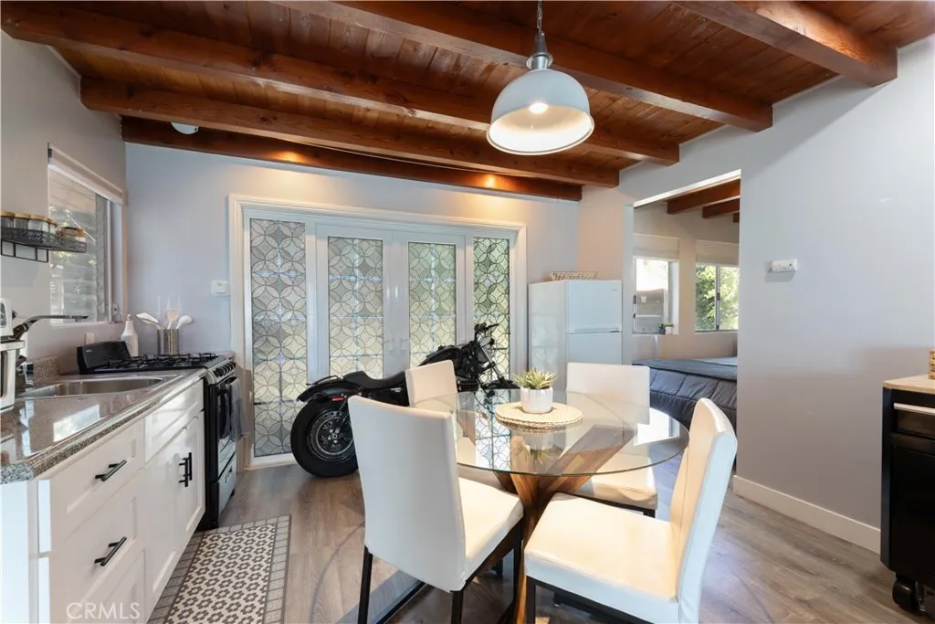 Discover this gem in a desirable Lakewood neighborhood! The home includes a versatile junior ADUstyle unit with proven rental income of $2,000+ per month or ideal for multi-generational living, guests, or a home office suite. This additional space features a lovely bathroom, fireplace, spacious living area, wet bar and kitchenette, two private entrances, and a serene private patio. The main home offers two bedrooms plus a generous office or flex room, an upgraded bathroom, and a large open kitchen with French doors leading to another private patio. Light-filled spaces and lush greenery throughout create a welcoming feel. Enjoy the benefits of fully paid-for solar and energy efficiency throughout. Perfect for those seeking flexibility, income potential, or extra living space. Rental history available upon request. Convenient to parks, schools, and local amenities. Private showings only.