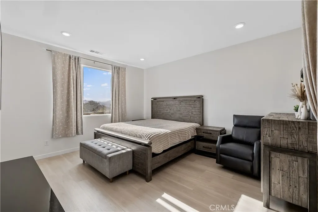 SELLER IS MOTIVATED AND WILL REVIEW ALL SERIOUS OFFERS. DON'T MISS THIS OPPORTUNITY! Welcome to your personal "SANCTUARY" at 27579 Sanctuary Ct, Valencia! This turn-key, top-of-the-line home offers a spacious three-level layout perfect for modern living and entertaining. On the first level, enjoy a private bedroom with an attached bath, ideal for an in-law suite or guest room. Ascend to the second level, where you will find a stunning kitchen and family room with breathtaking views in a prime location within this beautiful community. The kitchen is a chef's dream, featuring high-end appliances, energy saving upgrades, LED lighting, and fully paid-off solar. The third level hosts a second bedroom with full bath, plus an expansive primary suite with a luxurious spa tub, dual sinks, a connecting shower, and a walk-in closet, the ultimate retreat! You'll absolutely love the high ceilings, recessed lighting, beautiful hardwood floors throughout, and a spacious two-car garage. Enjoy resort-style living with a clubhouse, multiple pools, spa, playgrounds, barbecue areas, and scenic walking trails. Every detail has been thoughtfully designed for comfort, style, and effortless living. YOUR PERFECT SANCTUARY AWAITS!