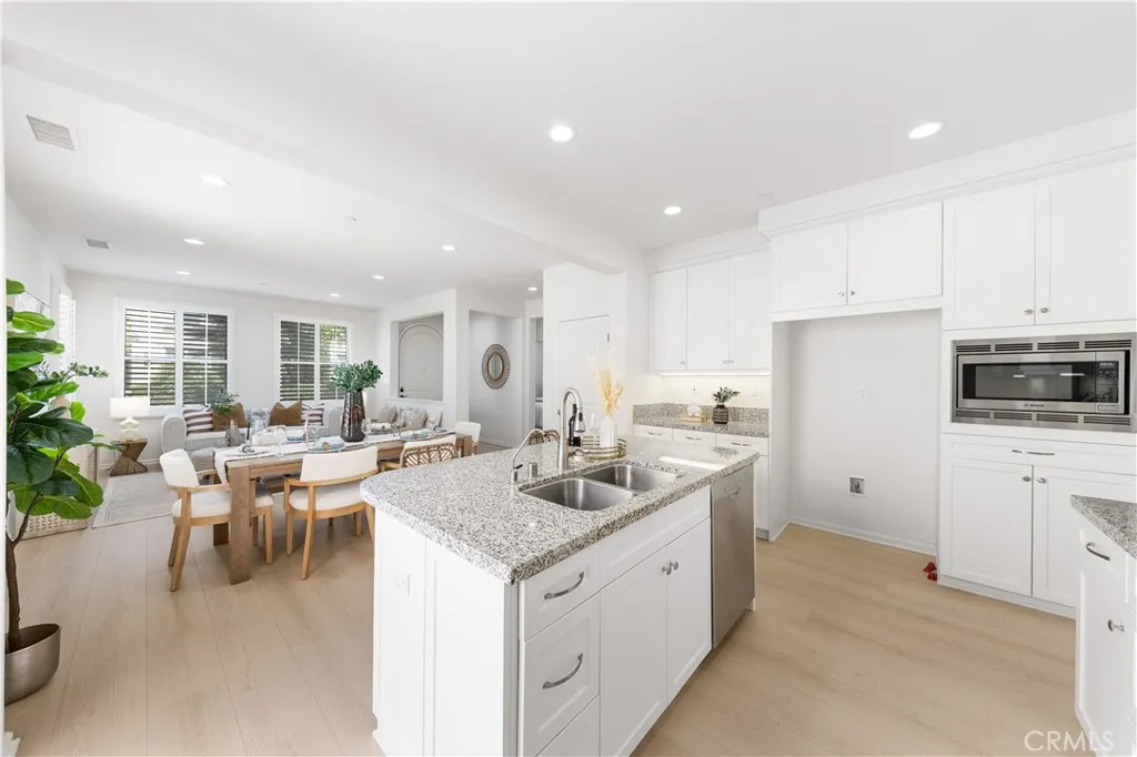 Welcome to 54 Jade Flower in Cypress Village a beautifully designed 3-bedroom, 3-bathroom home offering 1,619 sq. ft. of modern living in the desirable Caserta community. This open-concept floor plan features a spacious living area that flows seamlessly into the contemporary kitchen, creating the perfect space for gatherings and entertaining. A highly sought-after main floor bedroom and full bath provides flexibility for guests or a home office. Upstairs, two additional bedrooms each feature their own ensuite bathroom, along with a convenient laundry room. The primary suite includes a relaxing bathtub and abundant natural light. Upgrades include new laminate flooring and plantation shutters throughout, enhancing both style and functionality. The home also offers an enclosed patio with additional storage and a two-car garage. Residents of Cypress village enjoy access to resort-style amenities, including sparkling pools, spa, lush parks, and scenic walking trails. Located within the boundaries of award-winning Cypress Village Elementary, Jeffrey Trail Middle, and Irvine High School, this home also provides easy access to freeways, toll roads, shopping, and dining.