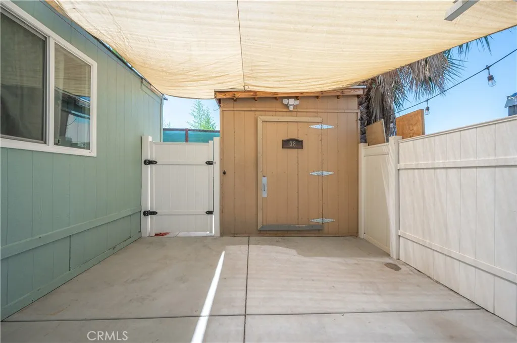 Moving-in ready home in the Redlands Ranch Family Park Fully Renovated 3-Bedrooms plus optional flex room that can be used as a 4th bedroom. Bonus room shows ceiling fan and closet. This stunning home offers a modern, open-concept design and extensive high-end upgrades like, new metal stud framing on half the home and a new open interior layout. Stylish sidelight front door with Smart Lock Touch & Wi-Fi Deadbolt (fingerprint scanner) and smart switches. Vinyl rigid flooring throughout with updated baseboards and door trims. New AC condenser and ducts for comfort year-round. Newer tankless water heater, Fresh exterior paint, new carport awning, and extended driveway (fits 4 cars) New cement around the lot and built-in storage shed with lighting & independent breaker. Completely upgraded 100 Electrical Panel. Kitchen comes with: Quartz countertops and white shaker cabinets, pot filler above the stove and full backsplash. Soffit ceiling in kitchen and dining area with pocket lighting. Alexa smart recessed lighting throughout, plus eyeball lights in the living room. Bedrooms: Ceiling fans in all 3 bedrooms and bonus room. Spacious master suite with walk-in closet. Master bath: modern renovation with freestanding soaker tub & LED niche, LED Bluetooth mirror, floating sink vanity, frameless glass shower, and tower shower-head with jets. Hallway bath: fully renovated with frameless shower, floating vanity with storage, and LED mirror. Laundry Room, comes with white shaker cabinets & sink for convenience. Community Amenities: Sparkling swimming pool and welcoming clubhouse. This h
