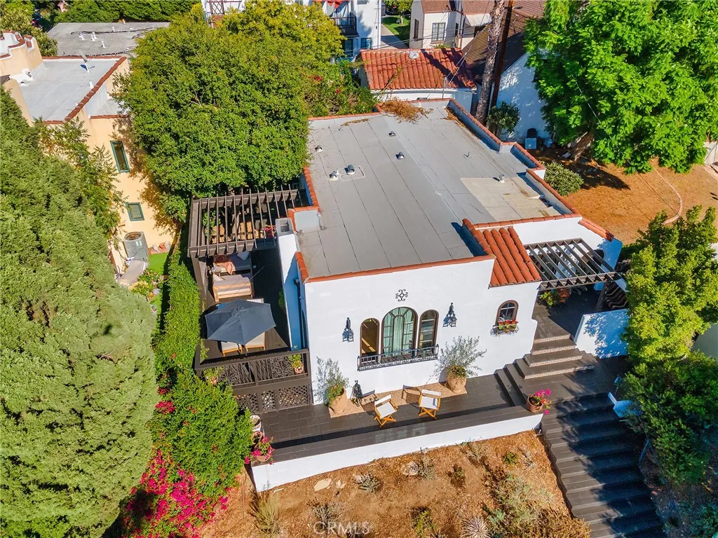 Welcome to this classic California Spanish Revival home in Adams Hills. Drama begins with the wide staircase that leads to this masterfully cared-for beauty. As you ascend, breathtaking views open up- the Verdugo Hills, twinkling city lights, and distant mountains. Inside, graceful archways frame the entries and hallways, while abundant French doors and Spanish-style windows bathe the interiors in natural light. Pure walnut floors add timeless richness underfoot, while original Wallace Neff lighting fixtures cast a warm, historic glow. Step outside to 600 square feet of wraparound decks with multiple spaces for entertaining or quiet retreat. The expansive primary suite offers generous built-in closets and drawers, plus a luxurious en suite walk-in closet. The kitchen is a chef's dream, featuring a Lacanche stove with both gas and electric ovens, alongside a Bosch refrigerator and dishwasher. Recent updates - electrical, HVAC, and insulation - ensure modern comfort, while a freshly painted exterior makes the home sparkle. With total privacy, no cars in sight, and sunshine streaming throughout, this is truly a slice of heaven.