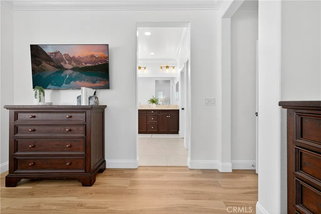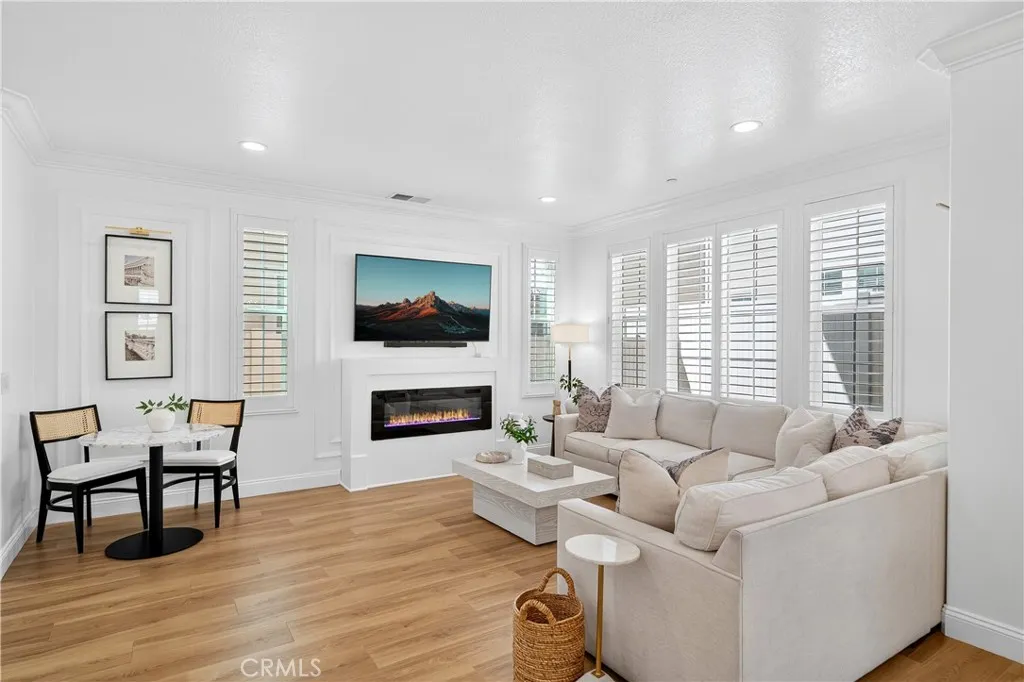 Step into luxury and modern elegance in this beautifully upgraded home located in the sought-after Parkplace neighborhood of Ontario Ranch. This stunning residence is filled with premium features and thoughtful design throughoutperfectly blending comfort, function, and contemporary style. Inside, you'll be greeted by newer neutral wood laminate flooring, crown and base molding, and shutters throughout that add timeless appeal. The remodeled chefs kitchen is a true showstopper, boasting quartz waterfall-edge countertops, under cabinet outlets, pendant lighting, an apron sink, open shelving, soft-close cabinets and drawers, custom slide-out organizers, a GE Profile stove with built-in air fryer, motion sensor hood, pot filler, wine fridge, under-cabinet lighting, and a butlers pantry for seamless entertaining. There's even a reverse osmosis water system under the sink for added convenience. Enjoy beautiful modern light fixtures, light dimmers throughout, and ceiling fans, creating the perfect ambiance day or night. The electric fireplace in the family room features both a heater and customizable colored lights for cozy evenings. Baths have been remodeled, the downstairs bath includes a space-saving pocket door, and all closets feature custom organizing systems to maximize storage. The primary suite is a private retreat, offering dual walk-in closets and a spa-like atmosphere. You'll also appreciate the upstairs laundry room and the included washer and dryer, prewiring for solar, fire sprinklers throughout, and energy-efficient windows to help save on utilities. Step outside t