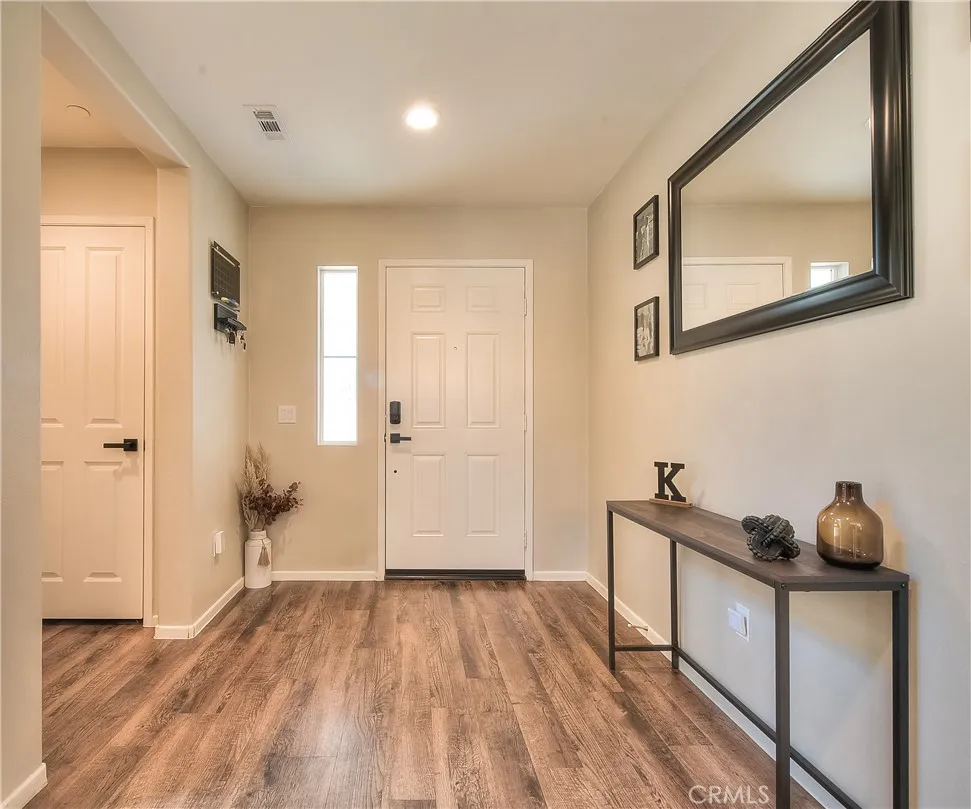 Welcome to your dream home at 29428 Bamboo Ct a beautifully upgraded, energy-smart residence in the heart of Winchesters Aspen Pointe community. With 3 bedrooms, 2.5 baths, and a generous loft upstairs, this home brings together stylish finishes, functional design, and outdoor appeal for modern living. The main level features elegant laminate wood flooring throughout, extending into all bathrooms and the upstairs laundry for both beauty and durability. The kitchen is a showpiece: stainless steel appliances, an elegant stone backsplash, upgraded matte black sink fixtures, and matching black door handles and cabinet hardware flow seamlessly throughout the home. A separate upstairs laundry room adds convenience and efficiency. The loft upstairs provides flexible spaceideal as a media room, play area, home office or study. The primary suite is a true retreat, boasting a walk-in closet, dual sinks in the bath, and tasteful finishes for comfort and style. PAID-OFF solar panels reduce your energy costs and offer peace of mind. A whole-house water softener and reverse osmosis filtration system deliver better water quality for the home. The backyard is an entertainers delight: a newer AlumaWood patio with ceiling fans and built-in heaters sets the stage for all-season outdoor enjoyment. A stone fire pit anchors cozy gatherings. Durable vinyl fencing ensures low maintenance and longevity. Large gated RV parking with reinforced concrete is secured behind a custom iron & wood gateperfect for those with toys or trailers. This home sits on a generous lot located in a cul-de-sac in a gro