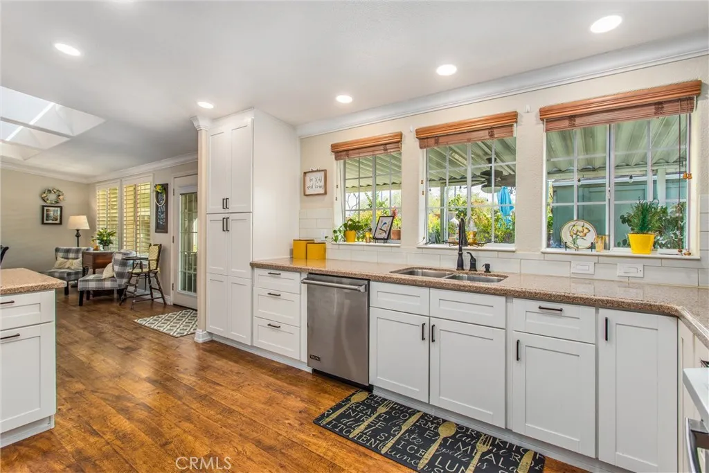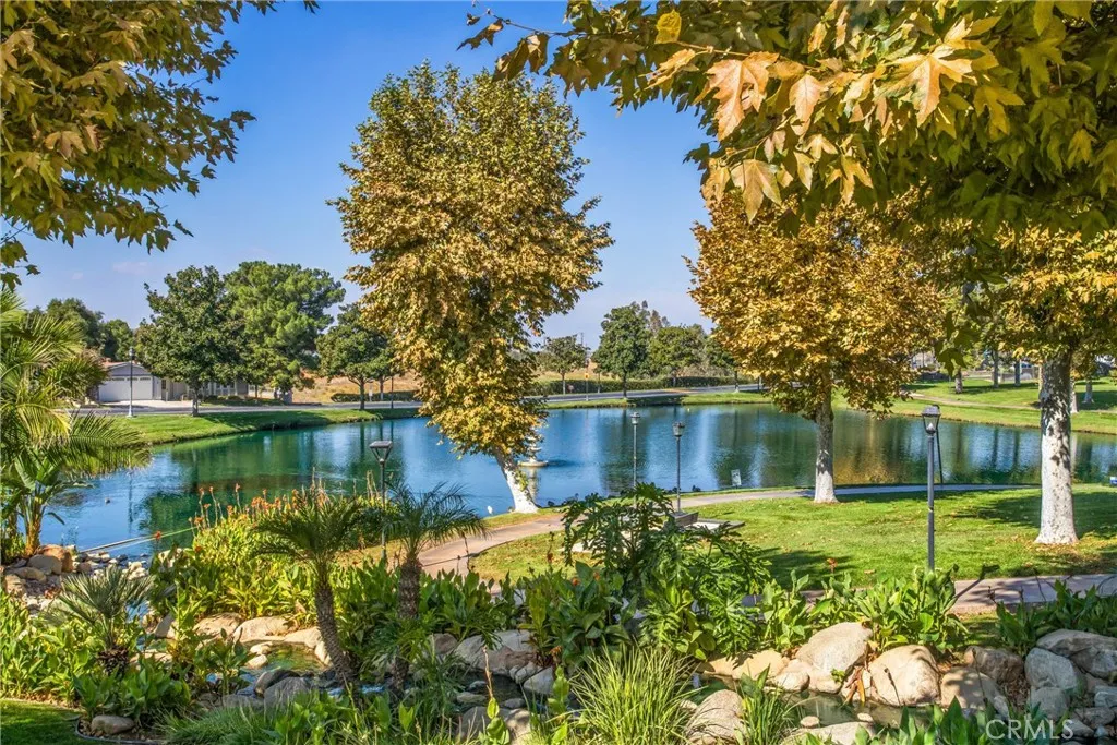 Exceptional 3-bedroom, 2-bathroom home, the largest currently available in Plantation on the Lake and one of the most spacious in recent listings. Boasting 2080 sq. ft., plus a bonus attached office, this home features stunning updates including a kitchen with new cabinets, recessed lighting, Viking appliances, and a beautiful backsplash. Crown molding, custom flooring, and ceiling fans in every room add to its charm. Enjoy Cathedral Ceilings, a front porch, and a garden paradise with tiered garden boxes a shed in the rear covered patio. The primary suite bedroom offers a remodeled bathroom with a Jacuzzi tub, walk-in shower, and marble counter. Located in Plantation on the Lake, renowned as one of the best retirement communities in the Inland Empire, offering a plethora of activities including 2 pools, 2 spas, pickleball, a putting green, fitness room, dog parks, clubhouse, and more. With low taxes and resort-style living, Plantation on the Lake is the ultimate 55+ active adult community, complete with ponds teeming with wildlife, multiple outdoor fire pit recreation areas and so much more, making it a true retirement destination