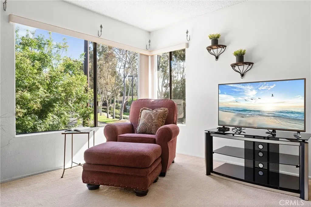 Nestled in the trees, this 2-bedroom, 2-bath single-level upper unit offers 917 square feet of comfortable living with a unique sense of privacy. As an end unit, it enjoys open outlooks and does not face directly into other homes. A charming front patio welcomes you before stepping inside. Its premium setting inside the loop places it away from busy streets and the highway, directly across from a community park and pool. South Lake and the South Lake Beach Club are just a short distance away and part of the everyday rhythm of life here. Living in Woodbridge means enjoying resort-style amenities, including two lakes, multiple pools, tennis and pickleball courts, and miles of walking paths. With its tranquil location and easy access to all that Woodbridge has to offer, this residence captures a sought-after Irvine lifestyle in a manageable and inviting space.