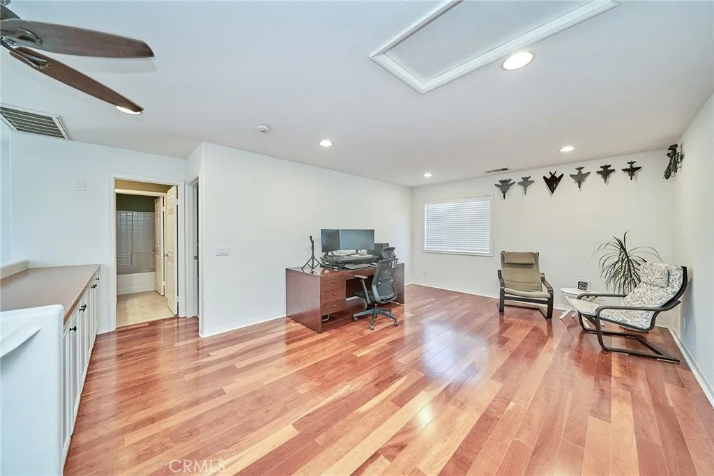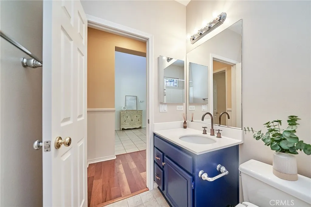 SUPER CLEAN. Stunning 4 Bedroom+1 Loft, with Mountain Views & Exceptional Layout. Welcome to your dream home in the esteemed Estrella Vista community of Santa Clarita! This meticulously maintained 3,011 sq. ft. residence is situated just north of Copperhill Drive in one of the most peaceful, safe, and sought-after neighborhoods. Built in 2002, this gem of a home offers an incredibly attractive and functional floor plan. Enjoy engineered hardwood floors in common areas, new carpeting in all bedrooms, and custom paint and molding throughoutincluding crown molding in the living room and dining room, window casings and chair rail details, and upgraded bathroom faucets. The gated front entry offers enhanced security and an enclosed private space. As you enter the home, youll be greeted by high ceilings, a beautiful staircase, and a spacious tiled foyer. Adjacent to the grand entry, there is a formal living and dining area, with lots of windows for abundant natural light. The kitchen, featuring upgraded appliances and an island with a breakfast bar for two, flows seamlessly into the bright family dining area and family room complete with a clean fireplace and splendid mountain views. The main level also includes one bedroom, one full bathroom, and a laundry room with a utility sink. Storage space is plentiful throughout the home, including a walk-in storage under the staircase and custom built-in cabinets in the family room and garage entry. Upstairs, youll find some of the largest secondary bedrooms in the neighborhood, plus a massive loft with cabinetryideal as a media room, pl