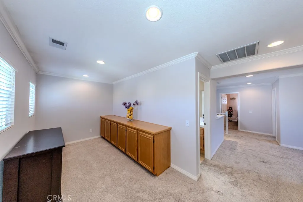 Step into modern sophistication. This luxurious 5 bedroom 3 bathroom home will satisfy all of your expectations. Upon entering, you will immediately notice the open floor plan, crown molding, windows that offer natural lighting, seamless tile flooring, office space, and the pleasing neutral color scheme. The kitchen is bold yet elegant. The CAFE brand appliances are both smart and Wi-Fi operative, dressed with gold fixtures, equipped to bring your culinary experience to another level. The cabinetry provides an abundance of storage, there is a pantry, and even your very own coffee bar! In the game/pool table area you will find a dry bar with 2 refrigerators, shelving, and additional cabinet space for storing snacks and goodies to offer your guests. Head upstairs to find a loft area along with 4 bedrooms that have carpet throughout. The main bedroom suite is a couples' dream with a fireplace, more windows for extra natural light, his/hers closets, and space space space!!! If that wasn't enough, wander back downstairs and enrapture yourself into the backyard oasis. The beach entry pool is surrounded by palm trees galore, tropical greenery, and a built-in BBQ with seating is nestled into the corner of the yard for added entertainment. There is a firepit, spa, and covered seating area with a ceiling fan to top off your hosting showcase. Solar is fully paid off. Walking distance from Lake Mathews Elementary. Close to shopping, Tyler Mall, and Dos Lagos. This dwelling can only truly be appreciated in-person. We invite you to visit before it's captured!!!