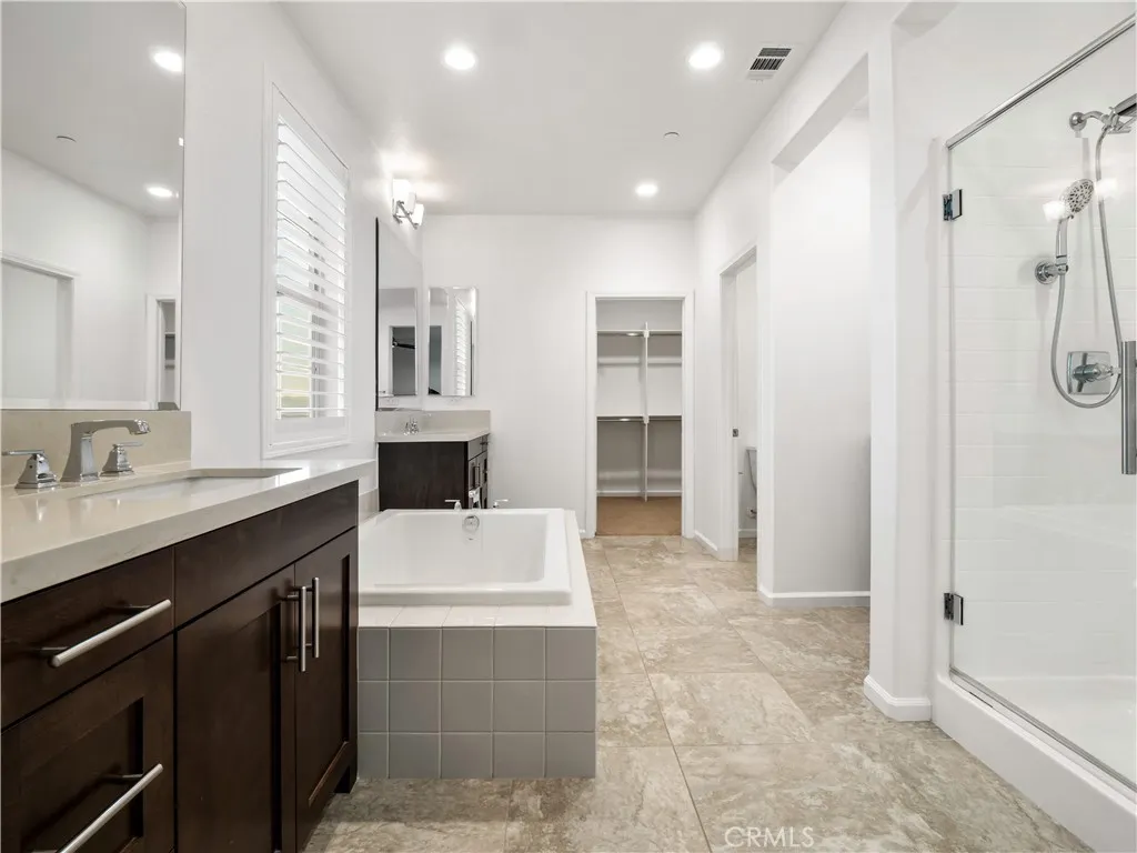 Beautiful Five Knolls Home  Spacious 4-Bedroom with Bed and Bath Downstairs and Resort-Style Amenities. Welcome to this stunning Five Knolls home offering over 2,200 SQFT of open living space with a highly desirable floorplan. This light and bright residence features a downstairs bedroom with a full bathroom and walk-in shower, perfect for guests or multi-generational living. The large living room seamlessly flows into the eat-in kitchen, which boasts a center island, stainless steel appliances, granite counters, and a walk-in pantryideal for entertaining. Upstairs, youll find a spacious primary suite with gorgeous views, a spa-like ensuite bathroom with dual sinks, a large soaking tub, glass-enclosed walk-in shower, and a huge walk-in closet. The upper level also includes a huge laundry room with folding station and storage, two additional bedrooms (one with a private balcony with views), and a shared bathroom with dual sinks. Interior upgrades include shutters, ceiling fans, and designer touches throughout. Step outside to enjoy your private backyard retreat with views, custom pavers, stone planters, lush landscaping, fruit trees and a built-in outdoor cooking station. The 2-car attached garage with epoxy flooring. Five Knolls is a community that offers a Resort Style Clubhouse "The Club", Security Patrol, Pool and Spa, Playground, BBQ areas, Half Court Basketball, City park with Dog Park, Butterfly Knoll and much more. It is also located near the famous Santa Clarita Paseos, Hiking Trails, Biking Trails and a short distance to shopping centers with restaurants, Walmart,