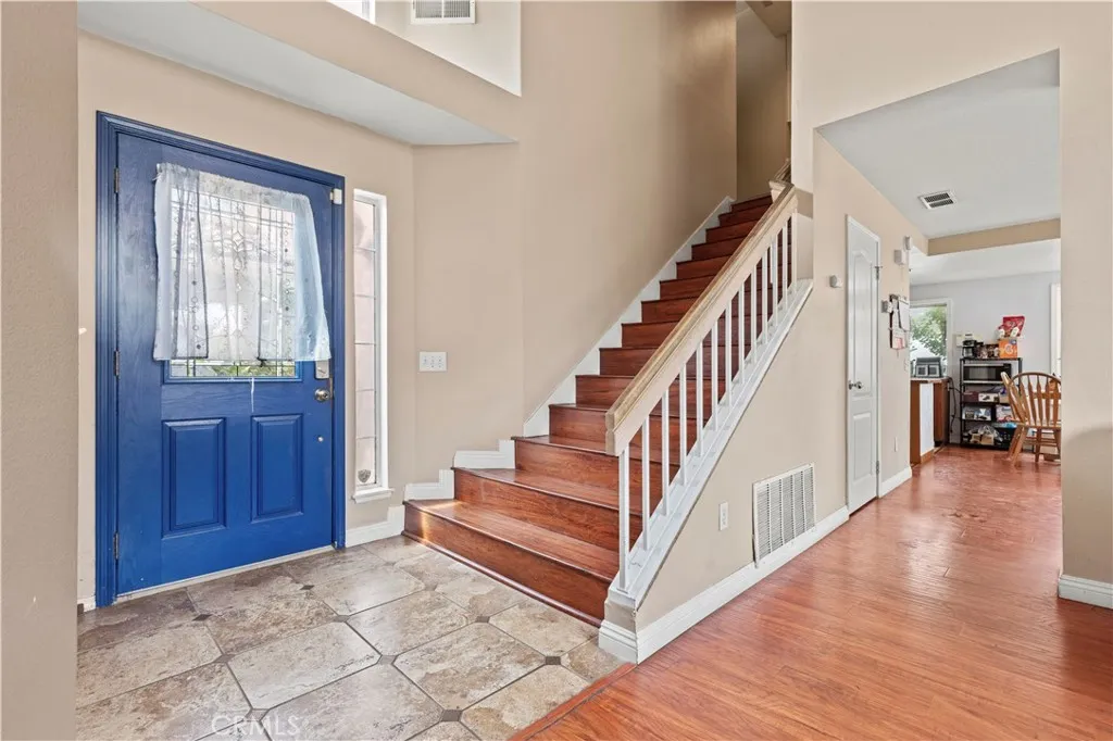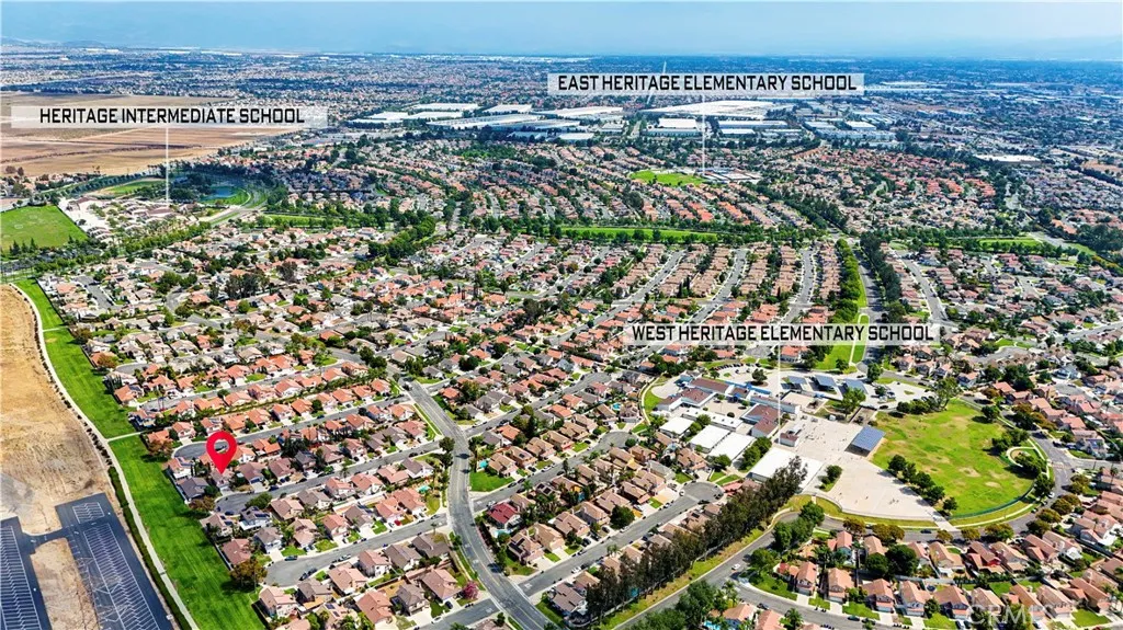 Welcome to this charming 4-bedroom, 2.5-bath home nestled on a quiet cul-de-sac in the highly desirable Village of Heritage community. Offering approximately 1,404 sq. ft. of living space, this two-story residence features vaulted ceilings, an inviting living room with a cozy fireplace, and a bright kitchen with center island, oak cabinetry, and tile countertops. The primary suite boasts a walk-in closet and a dual-sink bathroom with a tub/shower combo. Sliding glass doors lead to a private backyard patio, perfect for relaxing or entertaining. Additional highlights include an attached 2-car garage, low-maintenance landscaping, and no HOA fees. Conveniently located near parks, shopping, dining, and award-winning schools in the Etiwanda School District, with easy freeway access to the 15, 210, and 10. Dont miss this opportunity to own a home in one of Fontanas most sought-after neighborhoods! The backyard and side yard are planted with many fruit trees. Located in the highly acclaimed and award-winning Etiwanda School District. Don't miss it.