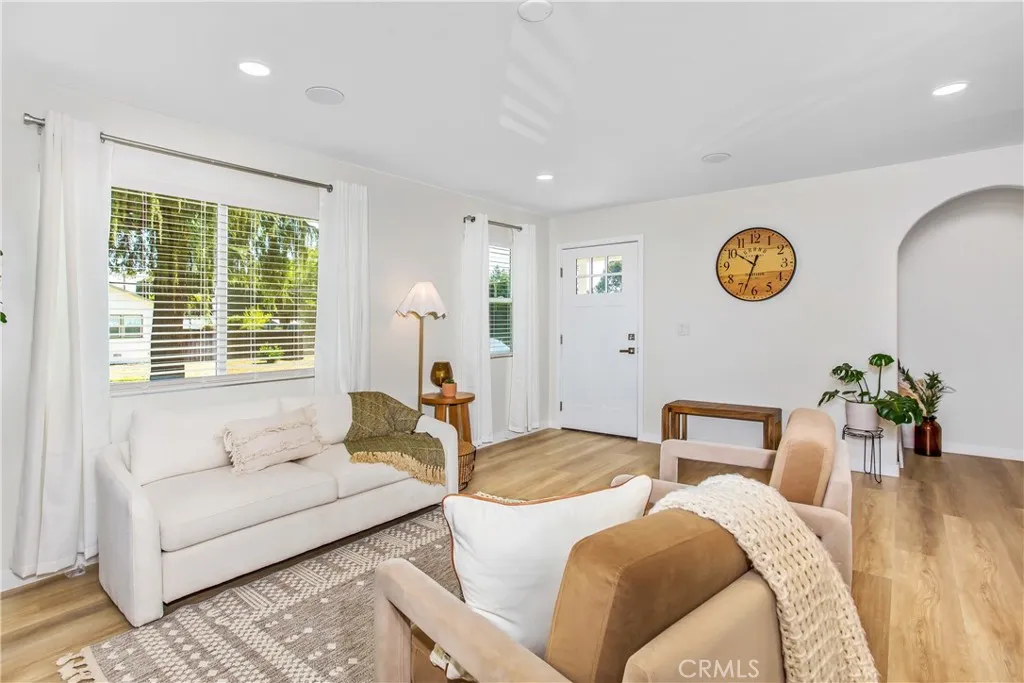 Welcome to this beautifully reimagined California Modern Ranch home, offering the perfect blend of comfort, convenience, and style. Ideally situated near the I-10 freeway, Trader Joes, Starbucks, In-N-Out, Chick-fil-A, and a variety of shopping and dining options. This home is truly a commuters dream with freeway access in less than two minutes. Featuring 3 bedrooms and 2 bathrooms, this thoughtfully upgraded residence showcases designer touches throughout. Enjoy durable vinyl plank flooring, recessed lighting, and ceiling fans in every bedroom. The home is also equipped with a Bluetooth wireless built-in speaker system, allowing seamless audio in the living area and kitchen. At the heart of the home is the custom kitchen, which features quartz countertops, soft-close cabinetry, stainless steel appliances, under-cabinet lighting. Both bathrooms have been tastefully updated, and every closet is enhanced with built-in lighting for added convenience. Step outside to an enclosed patio and a spacious backyard on 0.33 of an acre. With an extended driveway, theres room for multiple vehicles or even RV parking, not to mention the fully drywalled garage with recessed lighting. The backyard offers endless potential, a blank canvas where you can create your dream outdoor space or even add a pool one day. The front yard features low-maintenance landscaping with a sprinkler and drip system. This home is a rare find where every detail has been carefully considered for modern living. Dont miss the opportunity to make it yours!