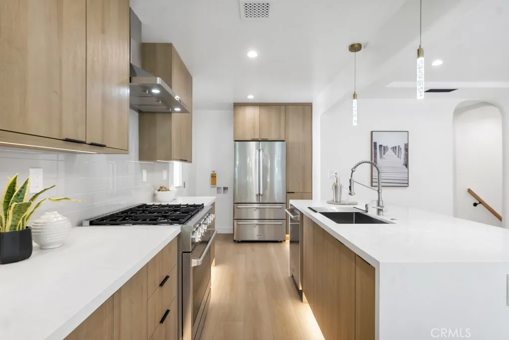 Modern Spanish Revival with Stunning Views and Complete Renovation in prestigious Elysian Heights Echo Park. Originally built in 1929, this Spanish Revival has been completely reimagined from the studs up, blending timeless architectural character with a full modern renovation. Beautifully remodeled with permits, including new bathrooms, kitchen, flooring, windows, plumbing, HVAC system, ductwork, central air conditioning, and a fully re-wired electrical system, electric fireplace. The interior offers three bedrooms and two bathrooms along with a spacious walk-in closet, a versatile yoga or storage room, and a private office. The kitchen is a centerpiece of the home with custom cabinetry, quartz countertops, high-end appliances, and natural light pouring through arched windows that preserve the charm of the original design. The primary suite creates a retreat-like experience with a spa-inspired bathroom and direct access to an expansive deck that overlooks the backyard. The outdoor spaces are designed for entertaining, featuring a large deck with sweeping mountain and neighborhood views and a newly landscaped yard that adds to the propertys curb appeal. A detached two car garage provides secure parking and also presents potential for an ADU. Throughout the home, original Spanish details such as arches and architectural curves have been thoughtfully preserved, giving the property an authentic character while offering the ease and comfort of a fully modern renovation.