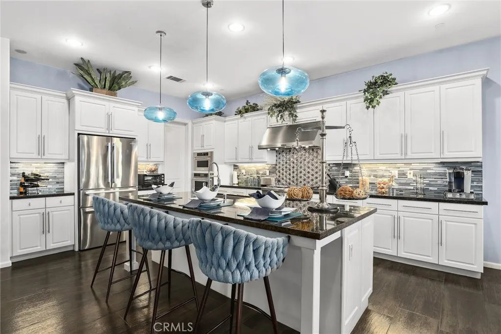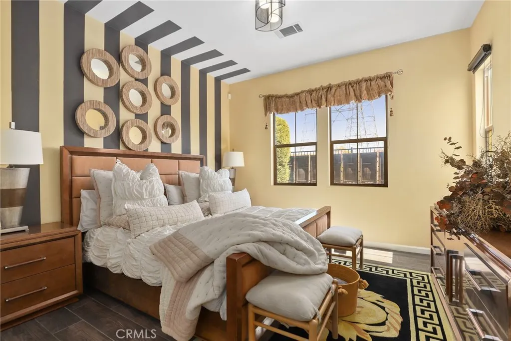 Priced to sell! Welcome to 27636 Camellia Drive, located in the exclusive gated enclave of The Heights at Five Knolls in Santa Clarita. This spacious 3,743 sq. ft. home has been thoughtfully designed to combine modern comfort with timeless appeal. The home offers five generous bedrooms, plus a dedicated office, and four-and-a-half bathrooms, providing plenty of space for family, guests, or multigenerational living. On the main floor, youll find a flexible layout that includes a private office and a full bedroom with ensuite bath perfect for working from home, hosting visitors, or accommodating extended stays, multigenerational living etc. The beautifully designed open-concept living areas flow seamlessly, highlighted by large double sliding doors that extend the indoors to the backyard. The outdoor living space is low-maintenance yet ideal for entertaining, with a covered patio, stone fireplace, tiled seating area. Upstairs, the primary suite serves as a private retreat, featuring a spa-like bath with a heated tile walkway, soaking tub, and separate shower. A spacious loft adjoins the suite, offering versatility for a media room, lounge, or play space. Upstairs find an additional 3 bedrooms, 2 fully bathrooms and a well appointed laundry room. Life at The Heights at Five Knolls comes with exclusive community amenities. Residents enjoy beautifully landscaped grounds, secure gated and access to The Club,complete with a resort-style pool, spa, and gathering areas designed for relaxation and entertaining. This property presents a rare opportunity to own within one of Santa Clar