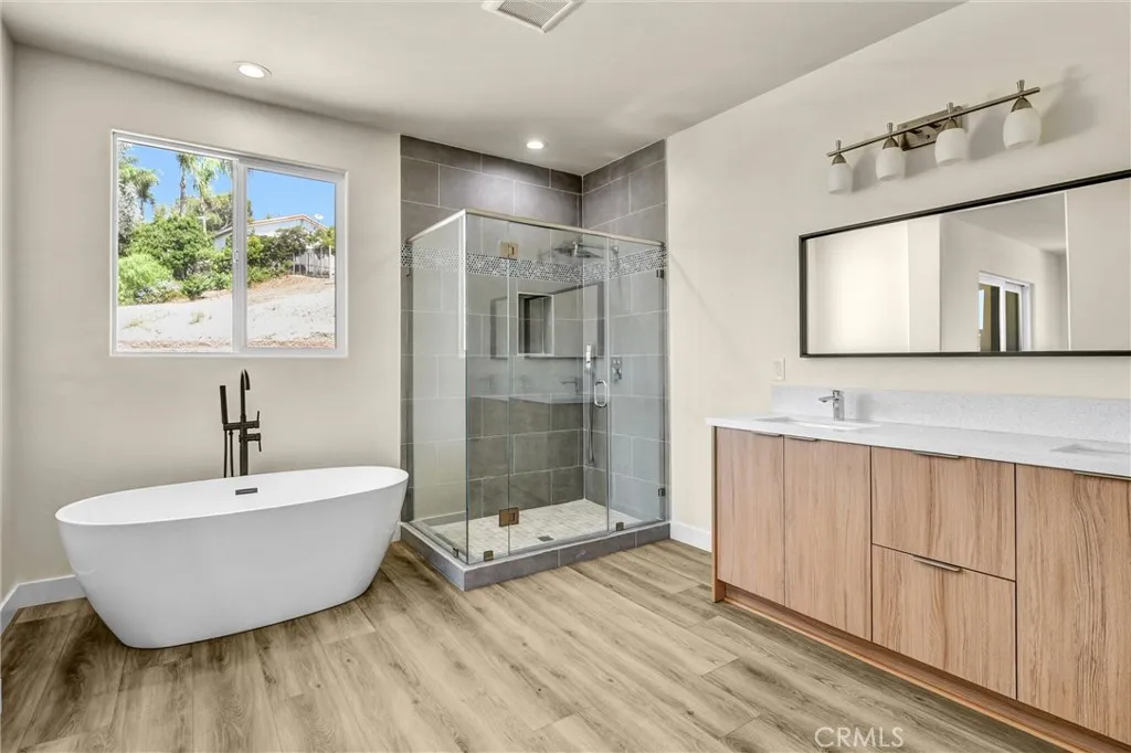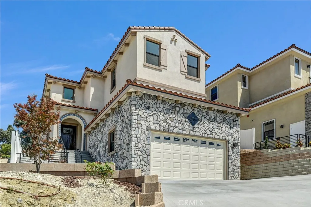 Welcome to this exclusive new development of six luxury single family residences in the prestigious City of Walnut, known for its award winning Walnut Valley Unified School District. Each estate features stunning views, expansive backyards over 10,000 sqft, and the potential for an ADU. The model home offers 2,858 sqft of elegant living space on a 13,120 sqft lot with 4 bedrooms and 4.5 bathrooms. All six homes range from 2,432 to 2,900 sqft, designed for comfort, natural light, and spacious living. Step inside to a bright foyer with sleek iron railings, luxury vinyl plank flooring, and high ceilings. The open concept main level seamlessly connects the living, dining, and kitchen areas. The gourmet kitchen boasts high end stainless steel appliances, quartz countertops, a large center island, and custom cabinetry. Expansive windows bring in natural light, and sliding glass doors open to landscaped backyards with lush lawns, pergola covered patios, and hillside views. A modern gas fireplace enhances the living area. Upstairs, the primary suite is a luxurious retreat with dual vanities, a walk in shower, a freestanding soaking tub, and a spacious walk in closet. Additional bedrooms are generously sized with large windows, and one features a private en suite bath. The junior suite on the main level includes its own bathroom, perfect for guests or multi generational living. Landscaped with terraced retaining walls, the property showcases stunning hillside views. Each home includes a two car garage with a stone facade and a private side yard for relaxation or gardening. There is