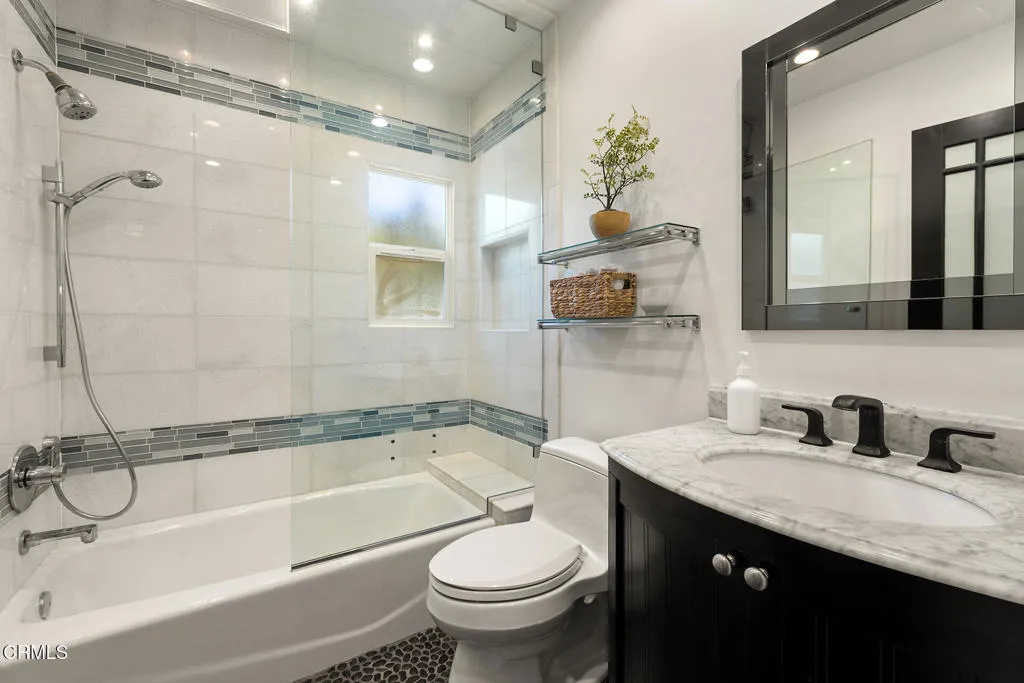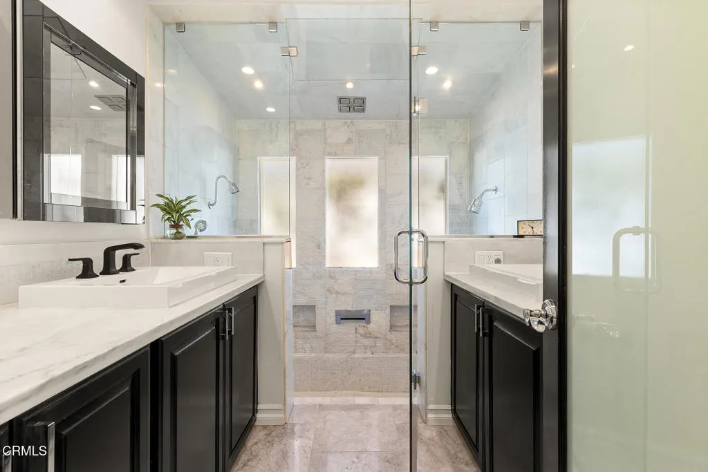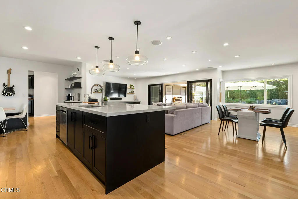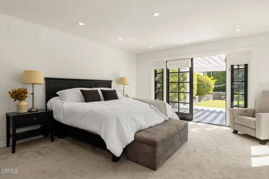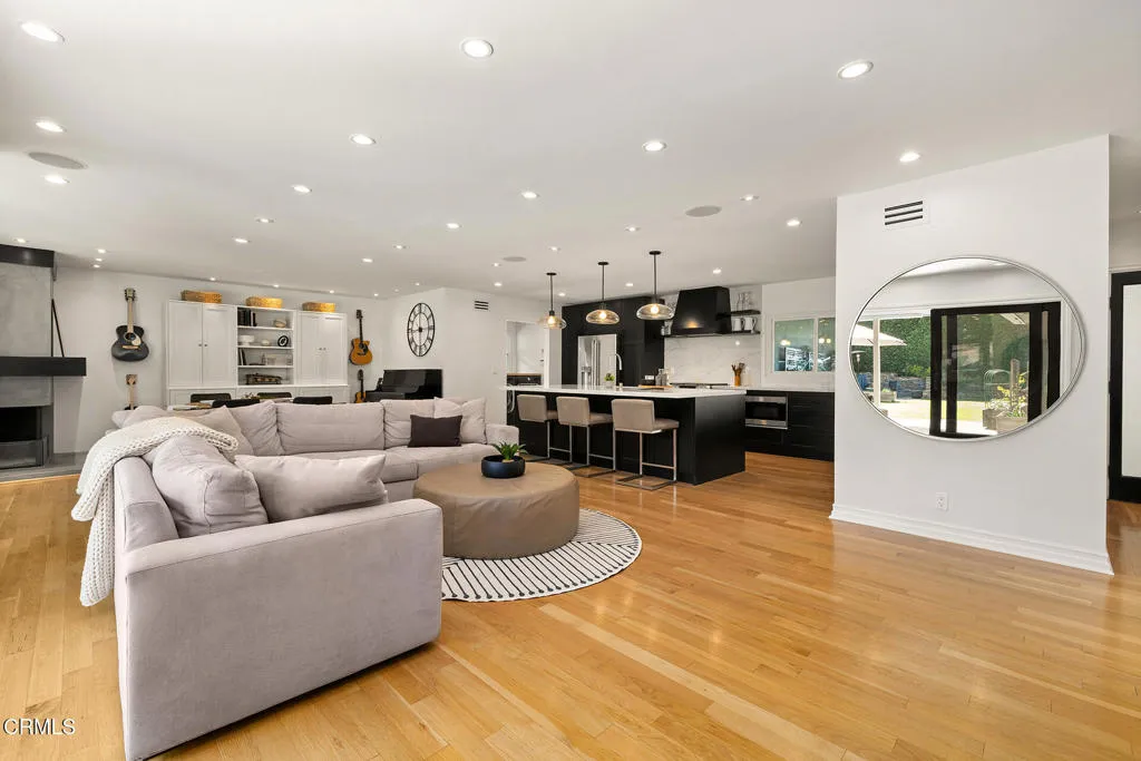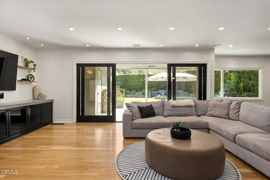 This Glenoaks Canyon Mid-Century Ranch in Northeast Glendale is the perfect retreat just minutes from the city. A walled courtyard entry welcomes you with a tranquil fountain, shaded by a majestic Sycamore tree. Glass entry doors open to an ideal layout featuring a spacious great room concept and a fully renovated chef's kitchen with an oversized island, built-in breakfast nook with bench seating and storage, and an additional beverage station. Large expanses of glass frame the surrounding landscape, bringing the outdoors in while providing a deep sense of privacy and tranquility. Hardwood floors flow through the entry and great room, connecting the kitchen, living room, and dining area accented by a corner fireplace. A large slider opens to a covered patio and beautifully landscaped backyard. A separate laundry area with additional storage and a utility sink offers direct access to the attached two-car garage. The impressive primary suite includes a luxurious spa-like bath with heated floors, a large multi-head steam shower, multiple closets, and French doors leading to a stone patio with a covered trellis. Two additional bedrooms with custom closets share a remodeled hall bath. The inviting backyard includes multiple patios, stone planters, and a grassy lawn with fruit trees, herbs, and vegetables, all completely enclosed by mature hedges providing exceptional privacy. Bonus features include a whole-house generator, newer tankless hot water heater, built-in garage storage, EV car charger, whole-house water filter, upgraded electrical panel, smart thermostat, newer windows